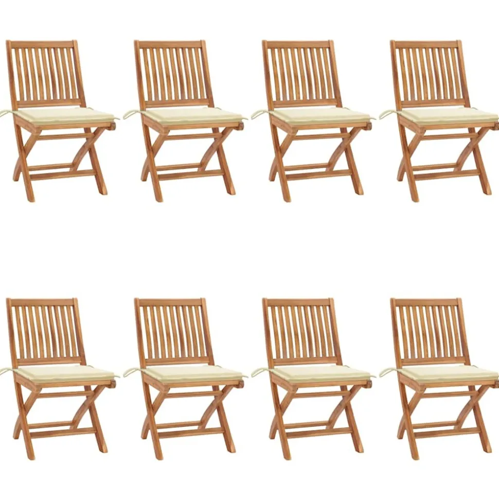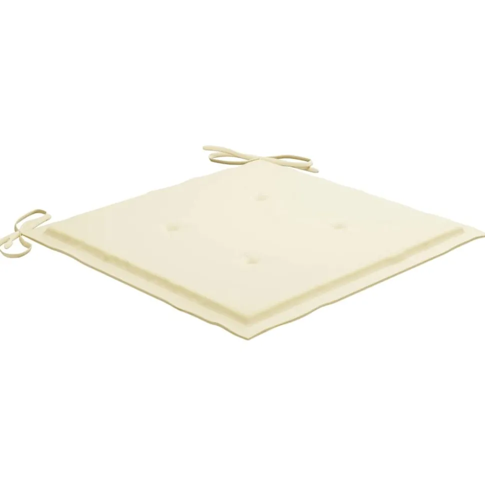 Cet ensemble de chaises de jardin en bois présente un design intemporel. Les chaises d鈥檈xtérieur conviennent à tous les environnements, tels que les maisons, les bureaux, les bars et les cafés, grâce à leur design simple mais élégant. Fabriqué en bois dur de teck extrêmement durable, cet ensemble de meubles en teck a été chevronné, séché au four puis finement poncé pour lui donner un aspect très lisse. Le bois de teck est connu pour sa résistance exceptionnelle aux intempéries, ce qui le rend bien plus adapté aux meubles de jardin que tout autre type de bois. Le bois de teck est le choix idéal si vous souhaitez acheter un meuble de jardin durable. Grâce à la surface sablée, les chaises de salle à manger sont résistantes aux intempéries et faciles à nettoyer. Elles peuvent également être pliées pour économiser de l鈥檈space de stockage lorsqu’elles ne sont pas utilisées. De plus, les coussins fournis offrent un confort supplémentaire. Chaque coussin dispose de 2 ensembles de cordes pour le fixer solidement sur la chaise. Remarque : afin de prolonger la durée de vie de vos meubles d’extérieur, nous vous recommandons de les nettoyer régulièrement et de ne pas les laisser à l’extérieur sans protection inutilement.Nettoyage : utiliser une solution savonneuse douceStockage : si possible, stockez dans un endroit frais et sec à l’intérieur. Si le produit est stocké à l’extérieur, protégez-le avec une housse imperméable. Essuyez et séchez l’excès d’eau ou de neige des surfaces planes après la pluie ou une chute de neige. Permettez une circulation d’air suffisante afin d’éviter les dommages liés à l’humidité.