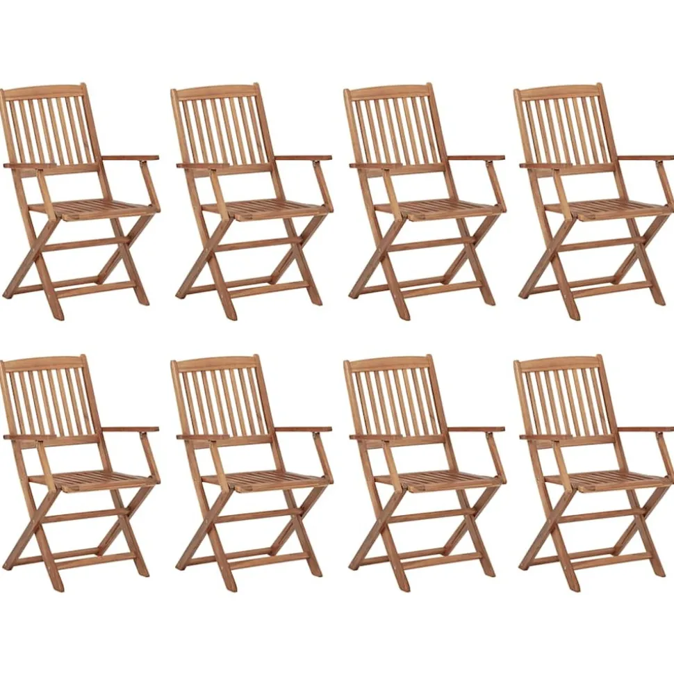 Cet ensemble de chaises de salle à manger contemporain en bois ajoutera une touche de style naturel à votre jardin, terrasse ou patio. Cet ensemble de chaises pliables sera un excellent choix pour les repas. Ces chaises de salle à manger sont construites en bois d’acacia de qualité supérieure, un bois tropical, qui est résistant aux intempéries et durable pour des années d’utilisation. La surface à finition à l’huile est également facile à nettoyer avec un chiffon humide. Les chaises peuvent être pliées pour économiser de l’espace lorsqu’elles ne sont pas utilisées. De plus, les coussins fournis offrent un confort supplémentaire. Chaque coussin dispose de 2 ensembles de cordes pour le fixer fermement sur la chaise. Remarque : afin de prolonger la durée de vie de vos meubles d’extérieur, nous vous recommandons de les nettoyer régulièrement et de ne pas les laisser à l’extérieur sans protection inutilement.Nettoyage : utiliser une solution savonneuse douceStockage : si possible, stockez dans un endroit frais et sec à l’intérieur. Si le produit est stocké à l’extérieur, protégez-le avec une housse imperméable. Essuyez et séchez l’excès d’eau ou de neige des surfaces planes après la pluie ou une chute de neige. Permettez une circulation d’air suffisante afin d’éviter les dommages liés à l’humidité.