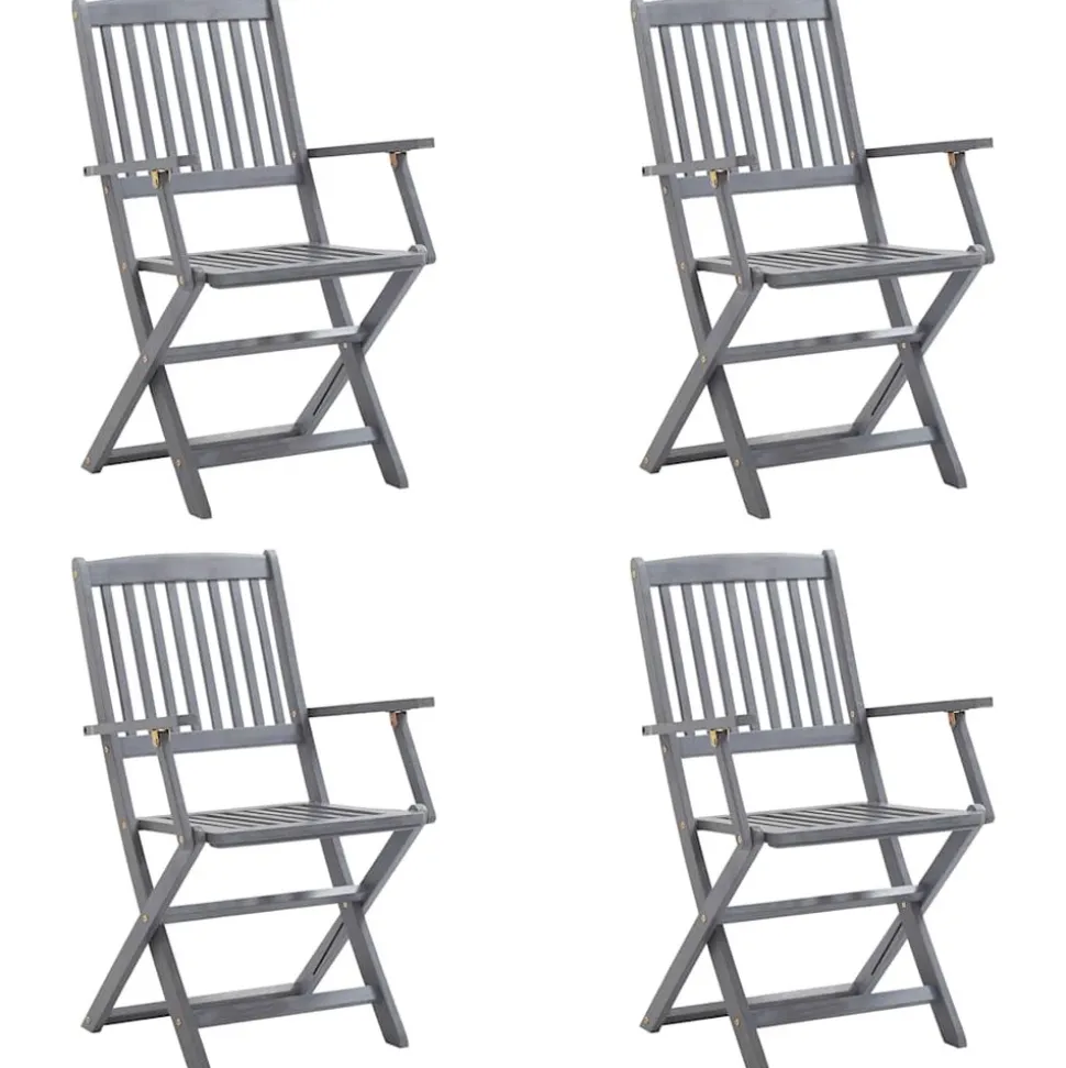 Cet ensemble de chaises de salle à manger en bois contemporain avec coussins ajoute une touche de style naturel à votre jardin, terrasse ou patio. Cet ensemble de chaises pliables est un excellent choix pour les repas. Ces chaises de salle à manger sont faites de bois d鈥檃cacia massif, un bois dur tropical, les rendant résistantes aux intempéries et durables pour des années d鈥檜tilisation. Le bois d鈥檃cacia massif a la force de soutenir le poids et de résister à l鈥檜sure du temps. La surface grise délavée est facile à nettoyer avec un chiffon humide. Les chaises peuvent être repliées pour économiser de l鈥檈space lorsqu’elles ne sont pas utilisées. De plus, les coussins inclus offrent un confort supplémentaire lors des moments de détente ou des repas. Chaque coussin comporte deux ensembles de cordes pour le fixer fermement à la chaise.