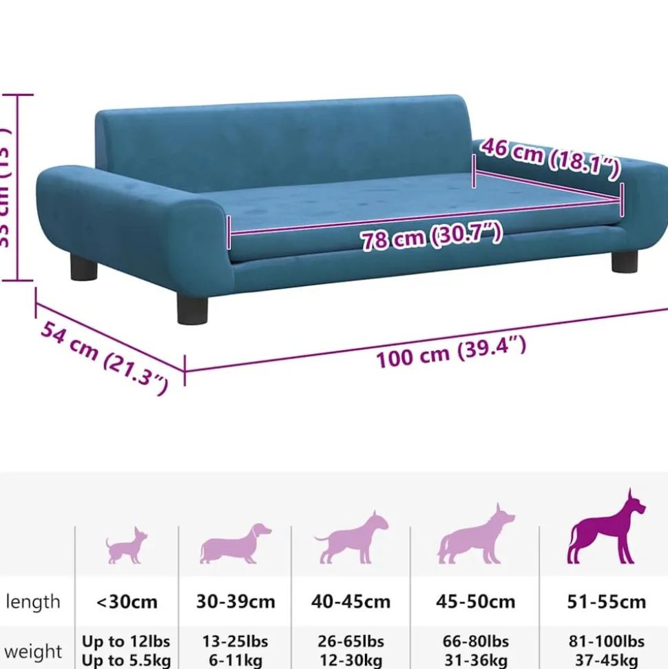 Offrez à votre ami à fourrure un endroit chaud et confortable pour se détendre avec ce lit pour chiens ! Matériau confortable et doux : le canapé pour animal de compagnie est rembourré de mousse épaisse et douce et recouvert de velours, offrant un soutien suffisant et un confort supérieur pour que votre adorable animal de compagnie puisse s’y reposer.Cadre robuste et durable : le cadre en bois de pin massif assure la robustesse et la durabilité du canapé pour chien. Les quatre pieds ajoutent également une stabilité supplémentaire.Design élégant : ce canapé pour chien s’adapte parfaitement à tous les thèmes de décoration et constitue un excellent complément à votre salon ou à votre chambre à coucher. Remarque :Veuillez mesurer la longueur du corps de votre animal de compagnie avant d’acheter.
