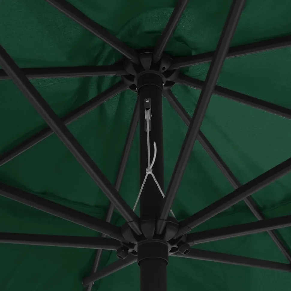 Ce parasol d’extérieur est parfait pour créer de l’ombre et vous protéger des rayons UV nocifs. Fabriquée en polyester anti-UV et anti-décoloration, la couverture de parasol vous offre une protection optimale contre le soleil et est facile à nettoyer. Le mât en métal et les 8 robustes nervures, rendent le parasol très stable et durable. Le parasol de jardin peut être ouvert et fermé facilement grâce au mécanisme à manivelle. L’article est facile à assembler. Veuillez noter que nous vous recommandons de traiter le tissu du parasol avec un spray imperméabilisant s’il est soumis à des fortes précipitations.