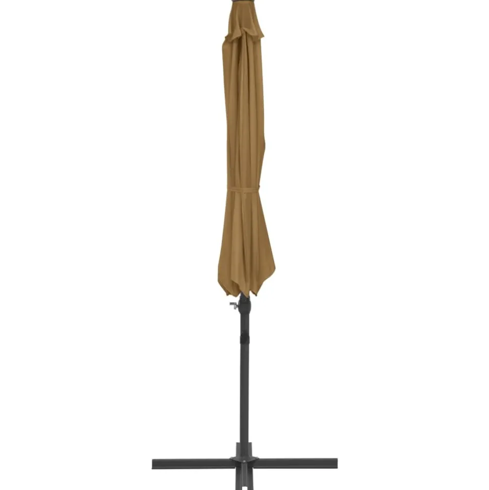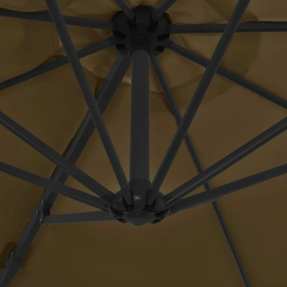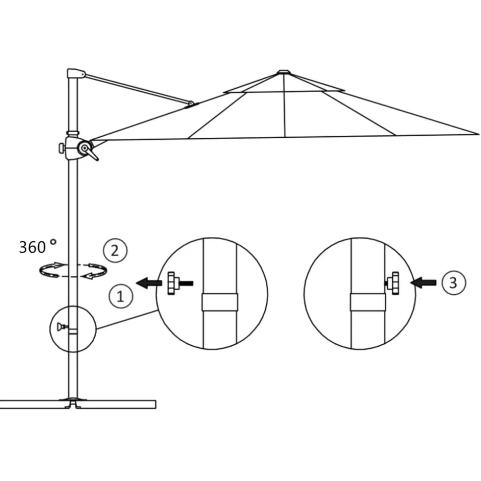 Cet élégant parasol suspendu est parfait pour créer de l’ombre et vous protéger des rayons UV nocifs. Fabriquée en polyester anti-UV et anti-décoloration, la toile de parasol vous offre une protection optimale contre le soleil et est facile à nettoyer. Il comporte une base croisée robuste pour ajouter de la stabilité. Le design exclusif de ce parasol vous permet de l’incliner et de le faire pivoter sur 360 degrés pour bloquer le soleil. Le poteau en acier robuste, ainsi que les 8 nervures durables, rendent le parasol très stable et durable. Notre parasol de jardin peut être facilement ouvert et fermé grâce au mécanisme à manivelle. L’article est facile à assembler. Veuillez noter que nous vous recommandons de traiter le tissu du parasol avec un spray imperméabilisant s’il est soumis à des fortes précipitations.