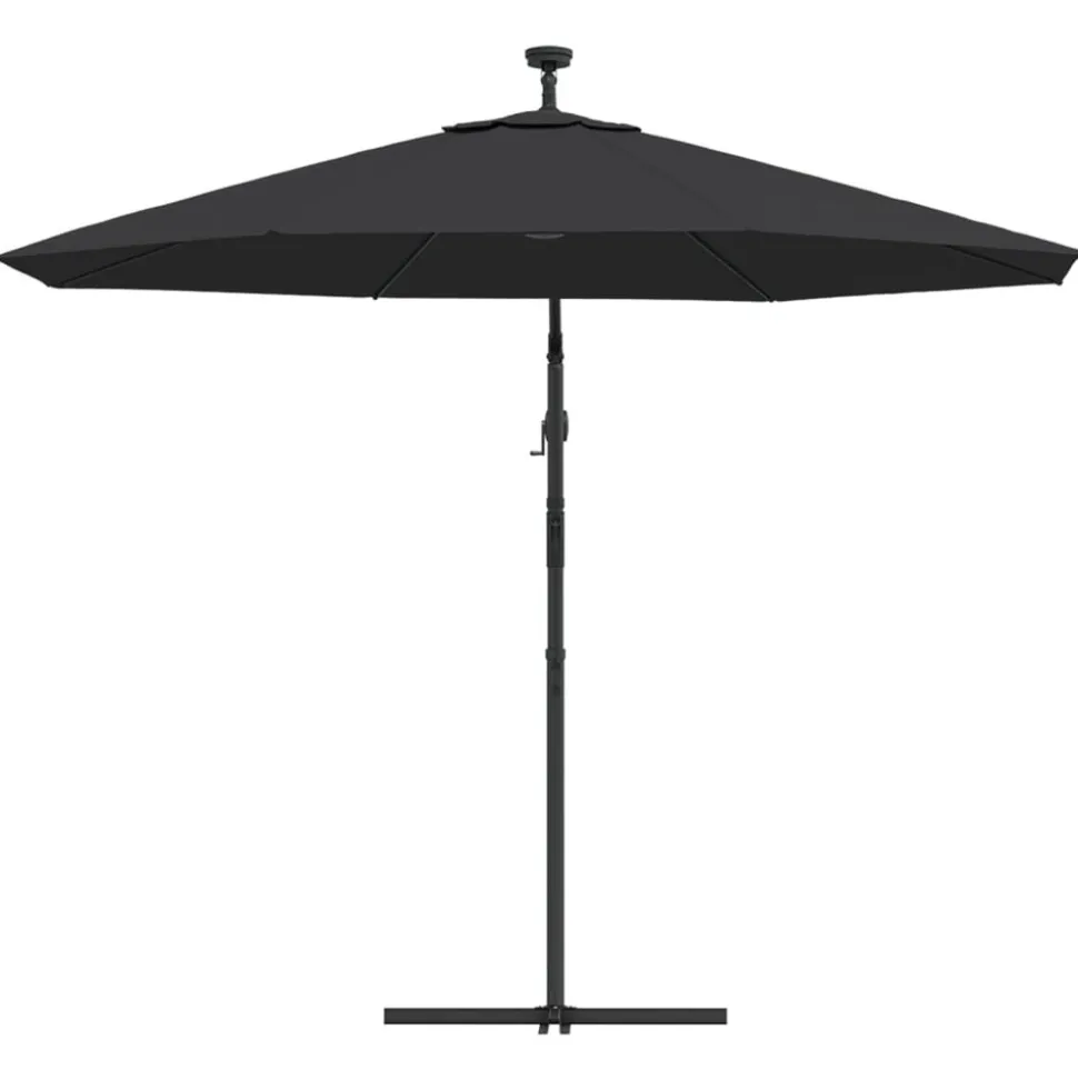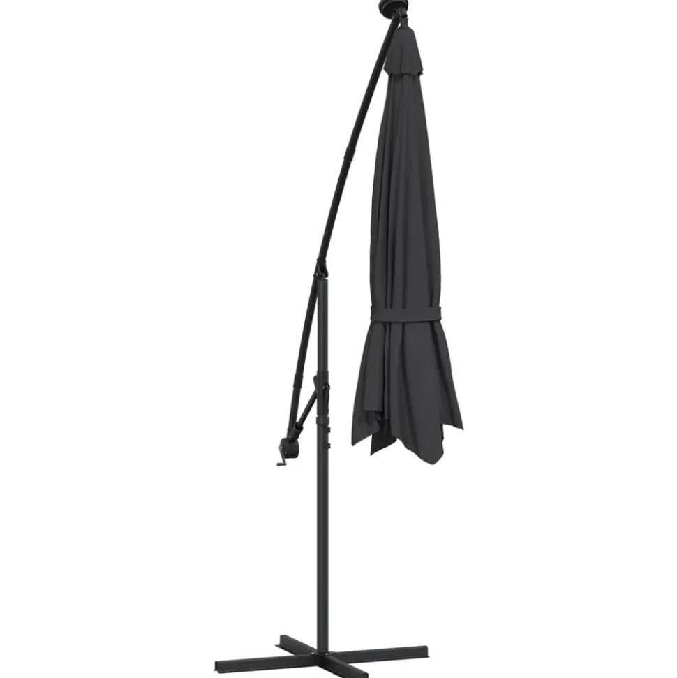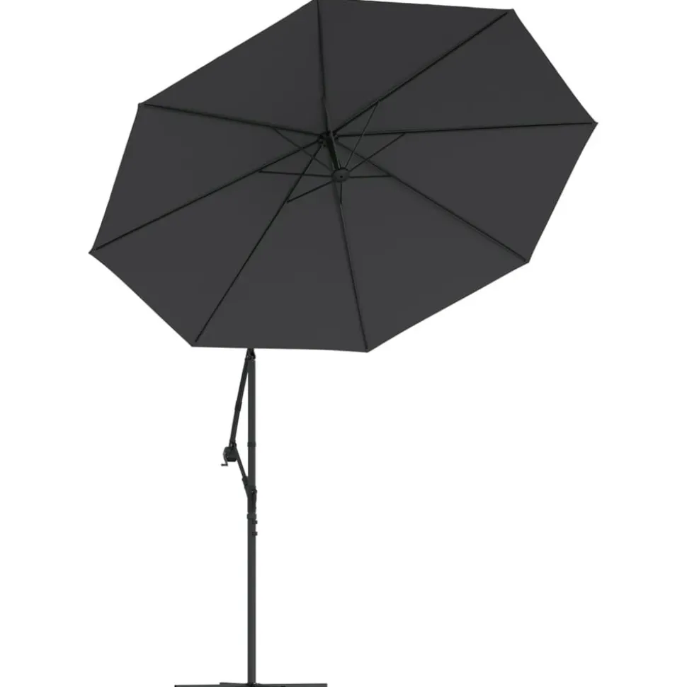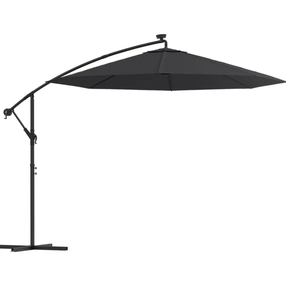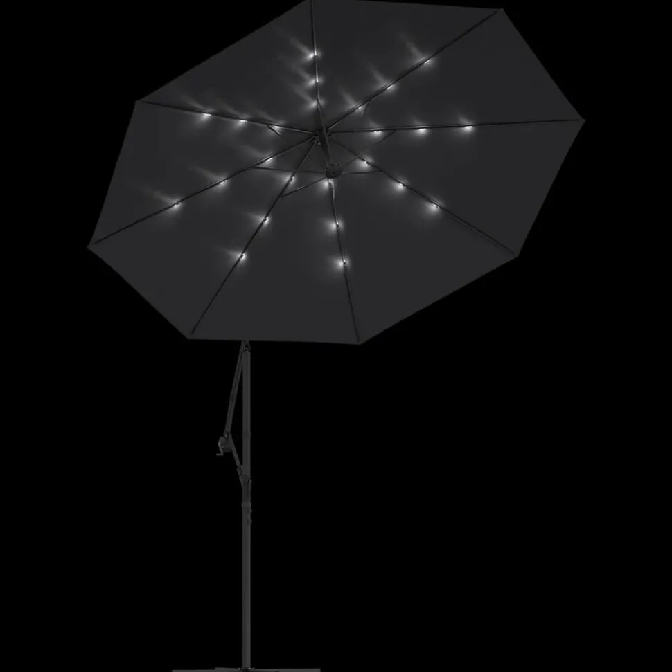Cet élégant parasol suspendu avec lumières LED est parfait pour créer de l’ombre et vous protéger des rayons UV nocifs. Fabriquée en polyester anti-UV et anti-décoloration, la toile de parasol vous offre une protection optimale contre le soleil et est facile à nettoyer. Le parasol dispose de 24 LED à énergie solaire pour éclairer automatiquement votre espace de vie extérieure et créer une ambiance chaleureuse et romantique quand le soleil se couche. Il est également livré avec une base croisée robuste pour une stabilité accrue. Le design exclusif de ce parasol vous permet d’incliner le parasol pour cacher le soleil alors qu’il se dirige vers l’horizon. Le mât en acier résistant, ainsi que les 8 nervures durables, rendent le parasol très stable et durable. Notre parasol de jardin peut être ouvert et fermé facilement grâce au mécanisme à manivelle. L’article est facile à assembler. Veuillez noter que nous vous recommandons de traiter le tissu du parasol avec un spray imperméabilisant s’il est soumis à des fortes précipitations.