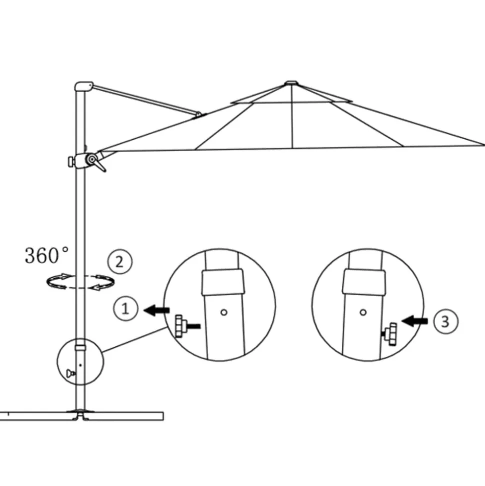 Cet élégant parasol suspendu est parfait pour créer de l’ombre et vous protéger des rayons UV nocifs. Fabriquée en polyester anti-UV et anti-décoloration, la toile de parasol vous offre une protection optimale contre le soleil et est facile à nettoyer. Il comporte une base croisée robuste pour ajouter de la stabilité. Le design exclusif de ce parasol vous permet de l’incliner et de le faire pivoter sur 360 degrés pour bloquer le soleil. Le poteau en aluminium robuste, ainsi que les 8 nervures durables, rendent le parasol très stable et durable. Notre parasol de jardin peut être facilement ouvert et fermé grâce au mécanisme à manivelle. L’article est facile à assembler. Veuillez noter que nous vous recommandons de traiter le tissu du parasol avec un spray imperméabilisant s’il est soumis à des fortes précipitations.