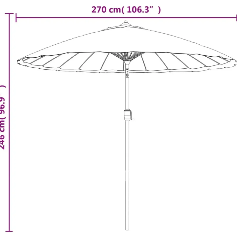 Ce parasol d’extérieur est parfait pour créer de l’ombre et vous protéger des rayons UV nocifs. Fabriquée en polyester anti-UV et anti-décoloration, la couverture de parasol vous offre une protection optimale contre le soleil et est facile à nettoyer. Le poteau en aluminium et les 24 nervures durables, rendent le parasol très stable et durable. Le parasol de jardin peut être ouvert et fermé facilement grâce au mécanisme à manivelle. L’article est facile à assembler. Veuillez noter que nous vous recommandons de traiter le tissu du parasol avec un spray imperméabilisant s’il est soumis à des fortes précipitations.