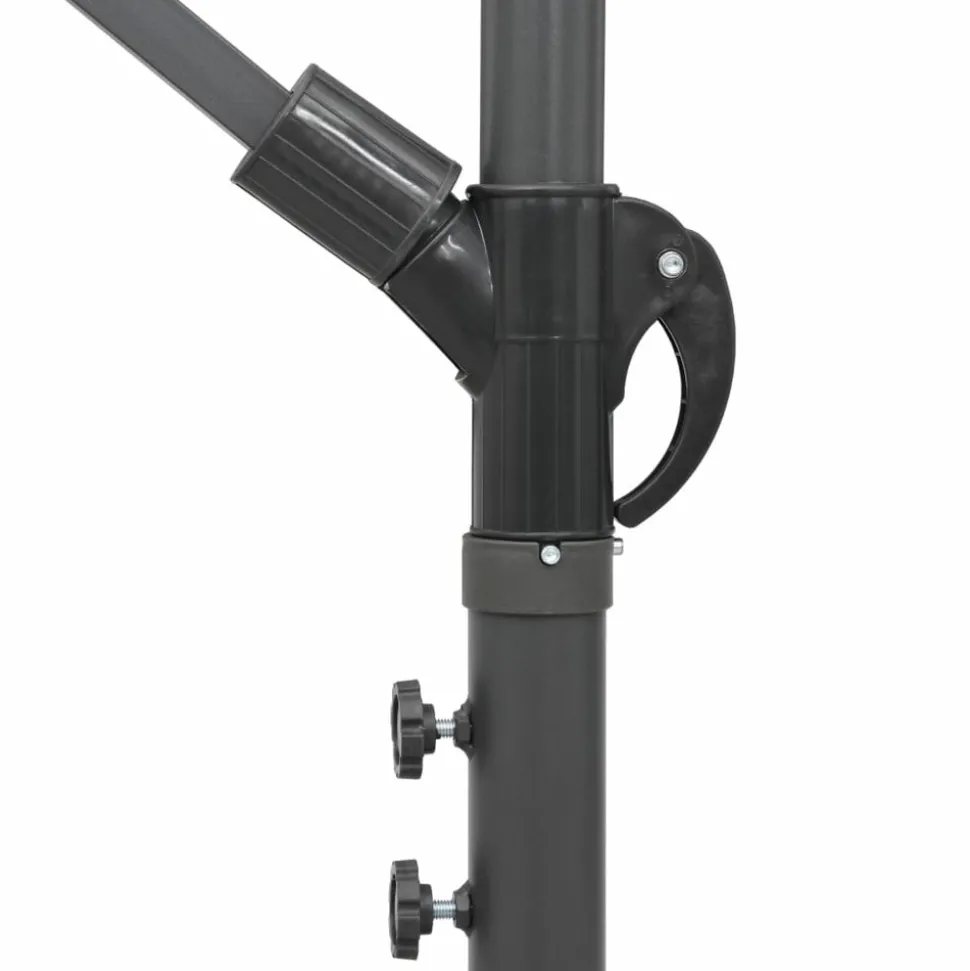 Ce parasol suspendu est parfait pour créer de l’ombre et vous protéger des rayons UV nocifs. Fabriquée en polyester anti-UV et anti-décoloration, la housse de parasol vous offre une protection optimale contre le soleil et est facile à nettoyer. Il comporte une base croisée robuste pour ajouter de la stabilité. Le design exclusif de ce parasol offre un très grand espace pour bloquer le soleil. Le poteau en aluminium, ainsi que les 16 nervures durables, rendent le parasol très stable et durable. Le parasol de jardin peut être ouvert et fermé facilement grâce au mécanisme à manivelle. L’article est facile à assembler. Veuillez noter que nous vous recommandons de traiter le tissu du parasol avec un spray imperméabilisant s’il est soumis à des fortes précipitations.