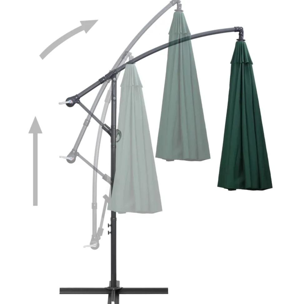 Ce parasol suspendu est parfait pour créer de l’ombre et vous protéger des rayons UV nocifs. Fabriquée en polyester anti-UV et anti-décoloration, la housse de parasol vous offre une protection optimale contre le soleil et est facile à nettoyer. Il comporte une base croisée robuste pour ajouter de la stabilité. Le design exclusif de ce parasol offre un très grand espace pour bloquer le soleil. Le poteau en aluminium, ainsi que les 16 nervures durables, rendent le parasol très stable et durable. Le parasol de jardin peut être ouvert et fermé facilement grâce au mécanisme à manivelle. L’article est facile à assembler. Veuillez noter que nous vous recommandons de traiter le tissu du parasol avec un spray imperméabilisant s’il est soumis à des fortes précipitations.