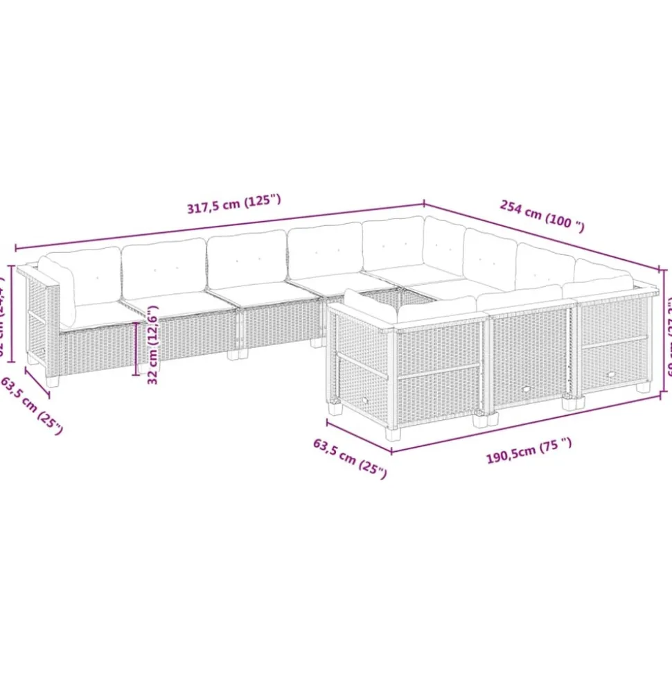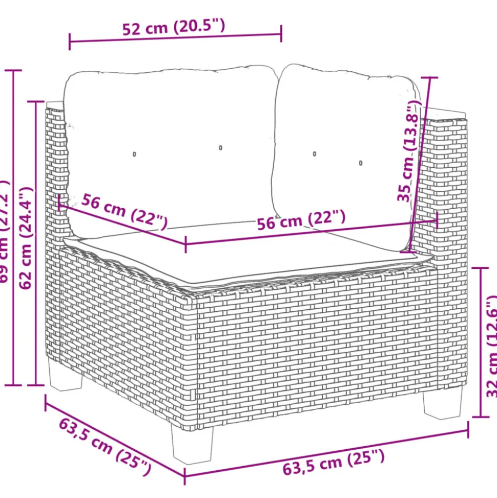 - Dimensions du coussin de dossier (angle) : 63,5 x 35 x 10 cm (L x l x é)