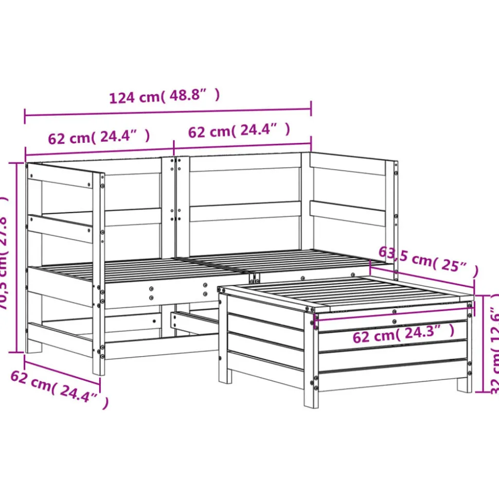 Cet ensemble de salon de jardin en bois avec un design à lattes sera un excellent complément à votre jardin, patio ou terrasse pour profiter d’un moment agréable avec votre famille ou vos amis. Matériau robuste et durable : le bois de pin massif est connu pour sa résistance et sa durabilité. Ses grains droits et ses n艙uds distinctifs contribuent à son charme rustique. Il a été imprégné avec une solution de conservation et a subi un traitement en autoclave, ce qui renforce sa résistance à la pourriture et aux intempéries. Bien ventilé et prévention de l’accumulation d’eau : la conception à lattes favorise une circulation optimale de l’air et empêche efficacement l’accumulation d’eau, assurant ainsi une assise sèche et confortable. Utilisation polyvalente : le repose-pied de jardin peut non seulement être utilisé pour s’asseoir ou se détendre, mais il peut également être utilisé comme table basse pour contenir vos boissons, votre nourriture et d’autres décorations. Conception modulaire : cet ensemble de meubles d’extérieur a une conception modulaire, ce qui le rend complètement flexible et facile à déplacer, afin que vous puissiez créer un agencement de meubles d’extérieur personnalisé. Bon à savoir :Pour que vos meubles d’extérieur restent beaux, nous vous recommandons de les protéger avec une housse imperméable.