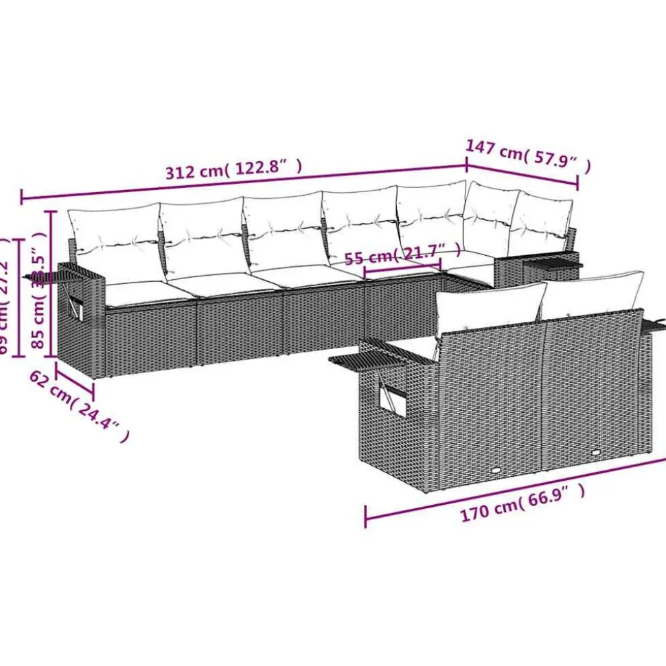 Cet ensemble de canapés de jardin est le complément parfait de votre arrière-cour, terrasse ou patio, offrant un espace confortable et accueillant pour discuter avec la famille et les amis ou simplement se détendre et profiter de l’extérieur. Matériau durable : la résine tressée, également connue sous le nom de poly rotin, est un matériau synthétique solide et nécessitant peu d’entretien qui ressemble au rotin naturel. Il est léger, facile à nettoyer et couramment utilisé pour les meubles d’extérieur en raison de sa durabilité et de ses propriétés de résistance aux intempéries. Table d’appoint pratique : ce mobilier d’extérieur comprend des tables d’appoint pliables avec un ressort à gaz sur les accoudoirs, offrant des endroits pratiques pour garder vos essentiels à portée de main. Expérience d’assise confortable : ce mobilier d’extérieur, doté de coussins épais, offre une expérience d’assise confortable. Housse amovible et lavable : ces coussins de siège sont dotés de housses amovibles pour un lavage et un entretien faciles.Conception modulaire : cet ensemble de meubles d’extérieur a une conception modulaire, ce qui le rend complètement flexible et facile à déplacer, afin que vous puissiez créer un agencement de meubles d’extérieur personnalisé. Bon à savoir :Pour que vos meubles d’extérieur restent beaux, nous vous recommandons de les protéger avec une housse imperméable.