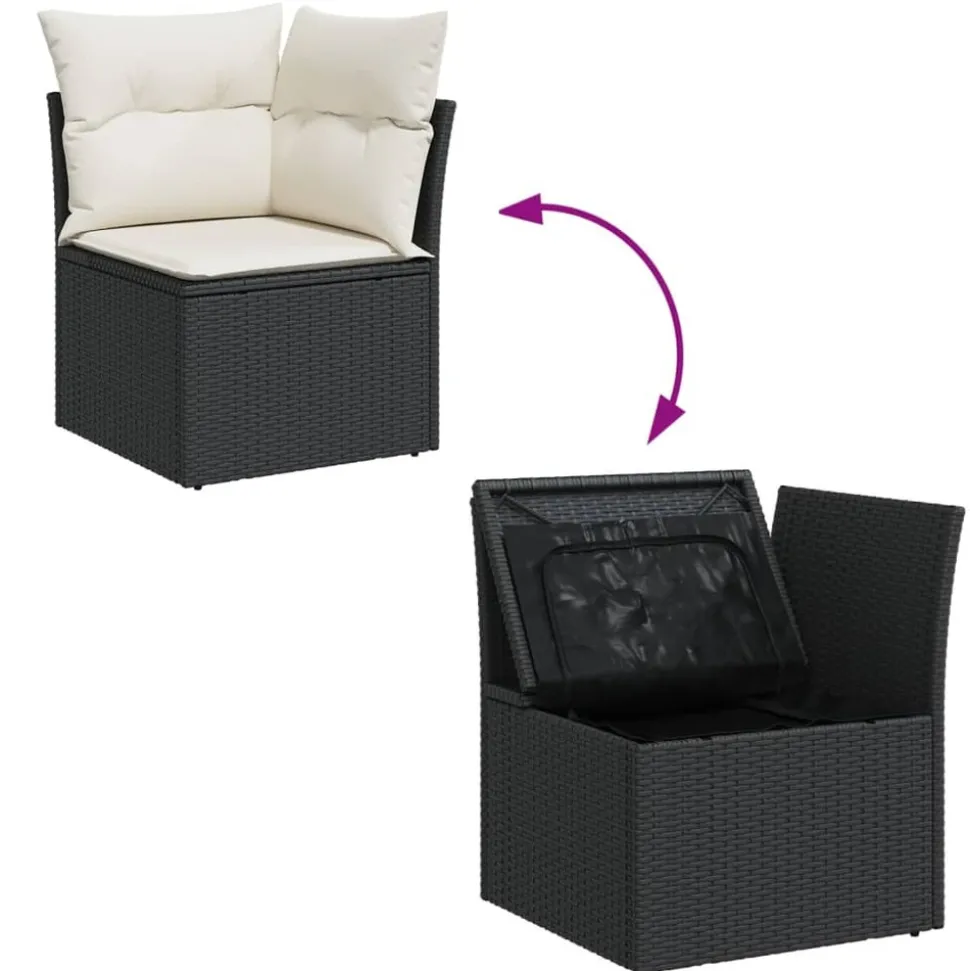 Cet ensemble de canapés de jardin est le complément parfait de votre arrière-cour, terrasse ou patio, offrant un espace confortable et accueillant pour discuter avec la famille et les amis ou simplement se détendre et profiter de l’extérieur. Matériau durable : la résine tressée, également connue sous le nom de poly rotin, est un matériau synthétique solide et nécessitant peu d’entretien qui ressemble au rotin naturel. Il est léger, facile à nettoyer et couramment utilisé pour les meubles d’extérieur en raison de sa durabilité et de ses propriétés de résistance aux intempéries.Fonction de rangement avec sac résistant à l’eau : chaque siège de jardin dispose d’un espace de rangement sous l’assise, complété par un sac résistant à l’eau pour ranger les coussins, les jouets et d’autres objets. Les sacs intérieurs sont dotés d’un couvercle et peuvent être solidement fixés aux sièges à l’aide de bandes auto-agrippantes pour plus de stabilité.Dessus stable et facile à nettoyer : cette table de jardin a un dessus en bois d’acacia robuste, durable et facile à nettoyer avec un chiffon humide.Housse amovible et lavable : ces coussins de siège sont dotés de housses amovibles pour un lavage et un entretien faciles.Conception modulaire : cet ensemble de meubles d’extérieur a une conception modulaire, ce qui le rend complètement flexible et facile à déplacer, afin que vous puissiez créer un agencement de meubles d’extérieur personnalisé. Bon à savoir :Pour que vos meubles d’extérieur restent beaux, nous vous recommandons de les protéger avec une housse imperméable.