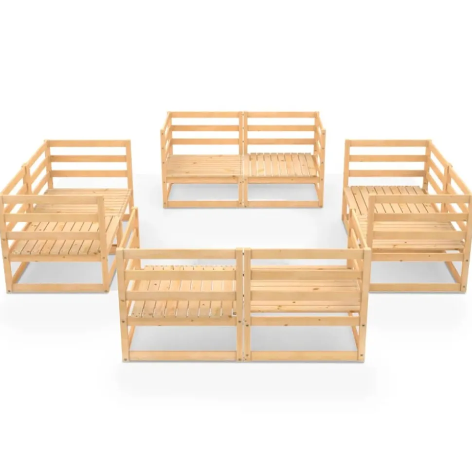 Ce salon de jardin est un excellent choix pour vous détendre et profiter du beau temps, faire une sieste ou discuter avec votre famille ou vos amis. Le salon de jardin est fait de bois de pin massif, ce qui le rend robuste et stable. Vous pouvez le combiner avec d’autres segments modulaires pour créer votre propre ensemble de salon de jardin ! Remarque : afin de prolonger la durée de vie des meubles d’extérieur, nous vous recommandons de les protéger avec une housse imperméable.
