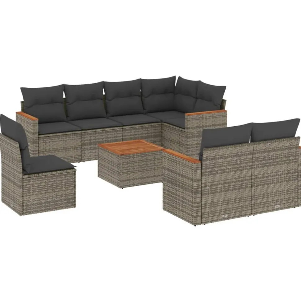 Cet ensemble de canapés de jardin est le complément parfait de votre arrière-cour, terrasse ou patio, offrant un espace confortable et accueillant pour discuter avec la famille et les amis ou simplement se détendre et profiter de l’extérieur. Matériau durable : la résine tressée, également connue sous le nom de poly rotin, est un matériau synthétique solide et nécessitant peu d’entretien qui ressemble au rotin naturel. Il est léger, facile à nettoyer et couramment utilisé pour les meubles d’extérieur en raison de sa durabilité et de ses propriétés de résistance aux intempéries.Fonction de rangement avec sac résistant à l’eau : le mobilier de jardin dispose d’un espace de rangement sous l’assise, complété par un sac résistant à l’eau pour ranger coussins, jouets et autres objets. Le sac intérieur peut être solidement fixé au mobilier d’extérieur grâce à des attaches auto-agrippantes pour plus de stabilité.Dessus stable et facile à nettoyer : cette table de jardin a un dessus en bois d’acacia robuste, durable et facile à nettoyer avec un chiffon humide.Housse amovible et lavable : ces coussins de siège sont dotés de housses amovibles pour un lavage et un entretien faciles.Conception modulaire : cet ensemble de meubles d’extérieur a une conception modulaire, ce qui le rend complètement flexible et facile à déplacer, afin que vous puissiez créer un agencement de meubles d’extérieur personnalisé. Bon à savoir :Pour que vos meubles d’extérieur restent beaux, nous vous recommandons de les protéger avec une housse imperméable.