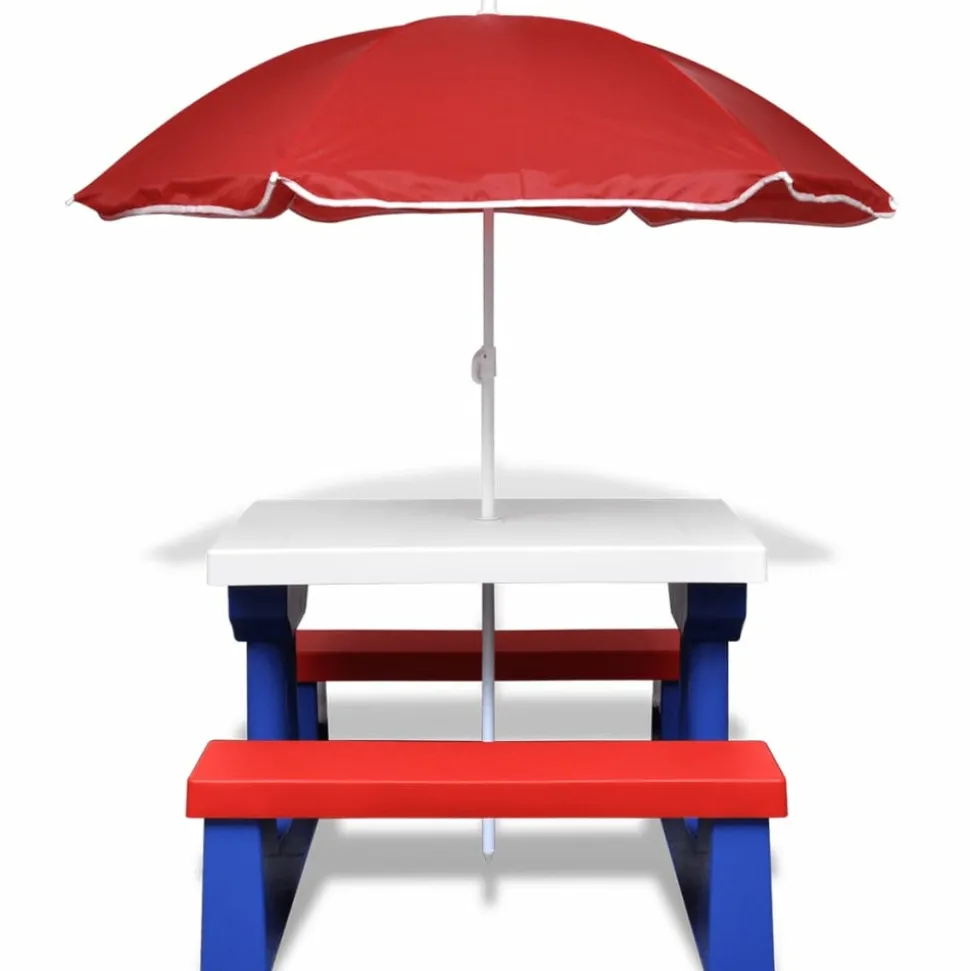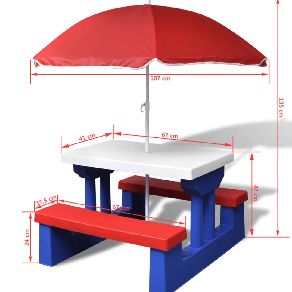 Cette table est parfaite pour faire pique-niquer vos enfants actifs ou pour les faire jouer à des jeux en plein air. Ensemble table et banc 2 en 1 : cette table de pique-nique classique pour enfant possède un grand plateau facile à nettoyer et 2 bancs. Structure robuste et stable : elle possède une structure stable, ce qui la rend sûre et durable. Parasol pratique : le plateau supporte un parasol durable, assurant aux enfants de jouer en sécurité à l’ombre. Bon à savoir :Assis autour de cette table, vos enfants passeront un bon moment avec leurs amis dans le jardin. La livraison comprend un parasol. Attention :Ne convient pas aux enfants de moins de 3 ans.
