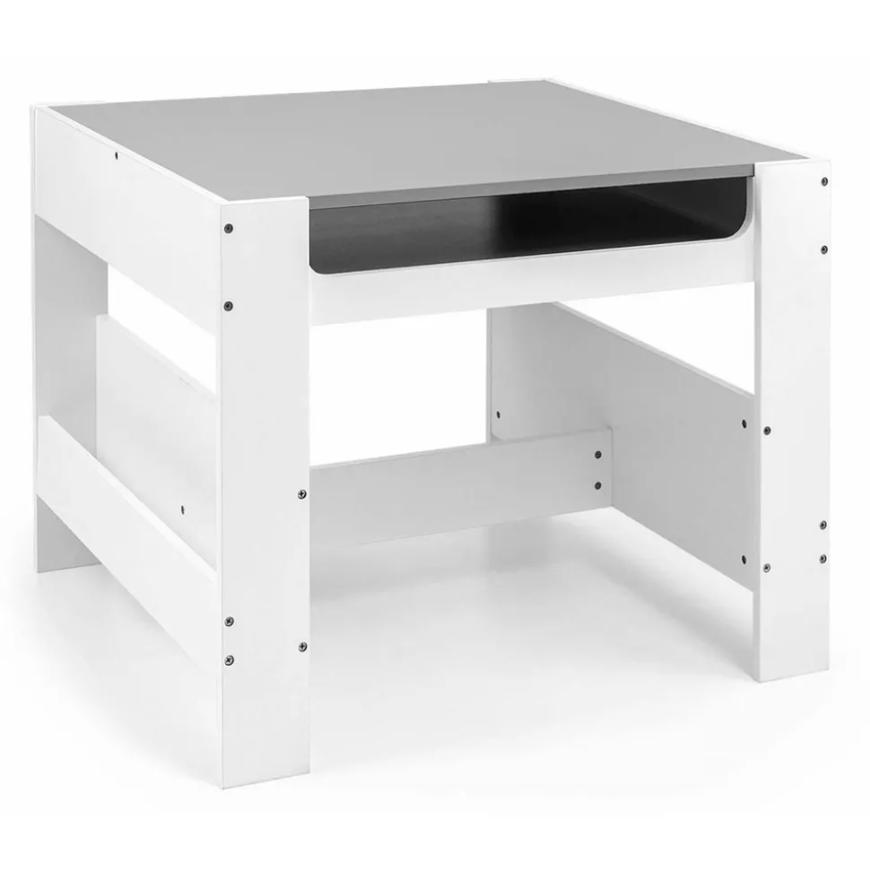 Ouvertures profilées des deux côtés de la table, permettant aux enfants d’accéder aux rangements