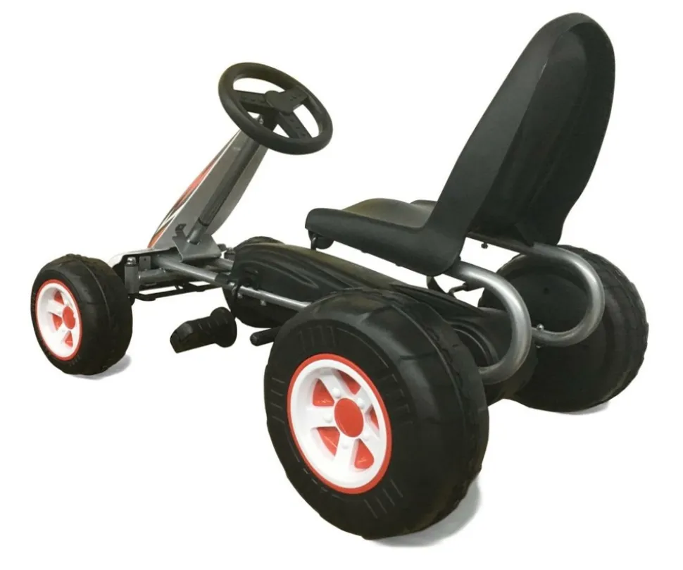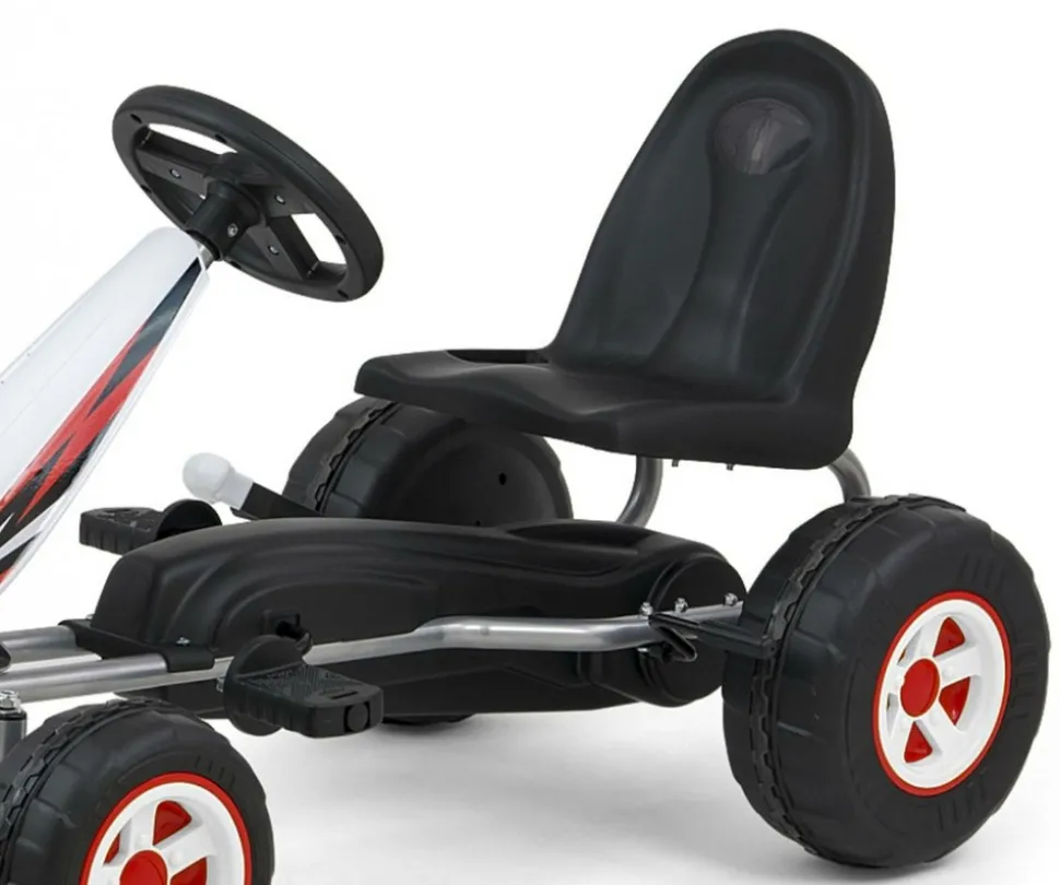 Nous vous présentons un autre modèle de kart appelé VIPER qui ravira tous les petits fans de voitures. Viper est équipé de grandes roues en plastique avec un élastique au milieu du pneu et des jantes colorées, ce qui permet à l’enfant de rouler confortablement même sur un terrain accidenté. Le cadre en acier de notre kart à pédales a été en outre renforcé avec des supports. Le frein à main utilisé assure un freinage sûr. Le kart VIPER dispose d’un siège conducteur sport avec 2 niveaux de réglage de la distance du volant, où chaque voyageur se sentira à l’aise. C’est grâce au réglage du siège du volant que le kart va « »grandir » » avec l’enfant. Viper est recommandé pour les enfants de plus de 3 ans. A la place de la plaque d’immatriculation, comme dans un véhicule adulte, on retrouve le logo Milly Mally avec deux échiquiers sur les côtés, ce qui signifie que notre kart de sport emmènera l’enfant dans le monde de la « »Formule 1″ » et se sentira comme un vrai pilote de rallye. Dimensions 87x48x46
