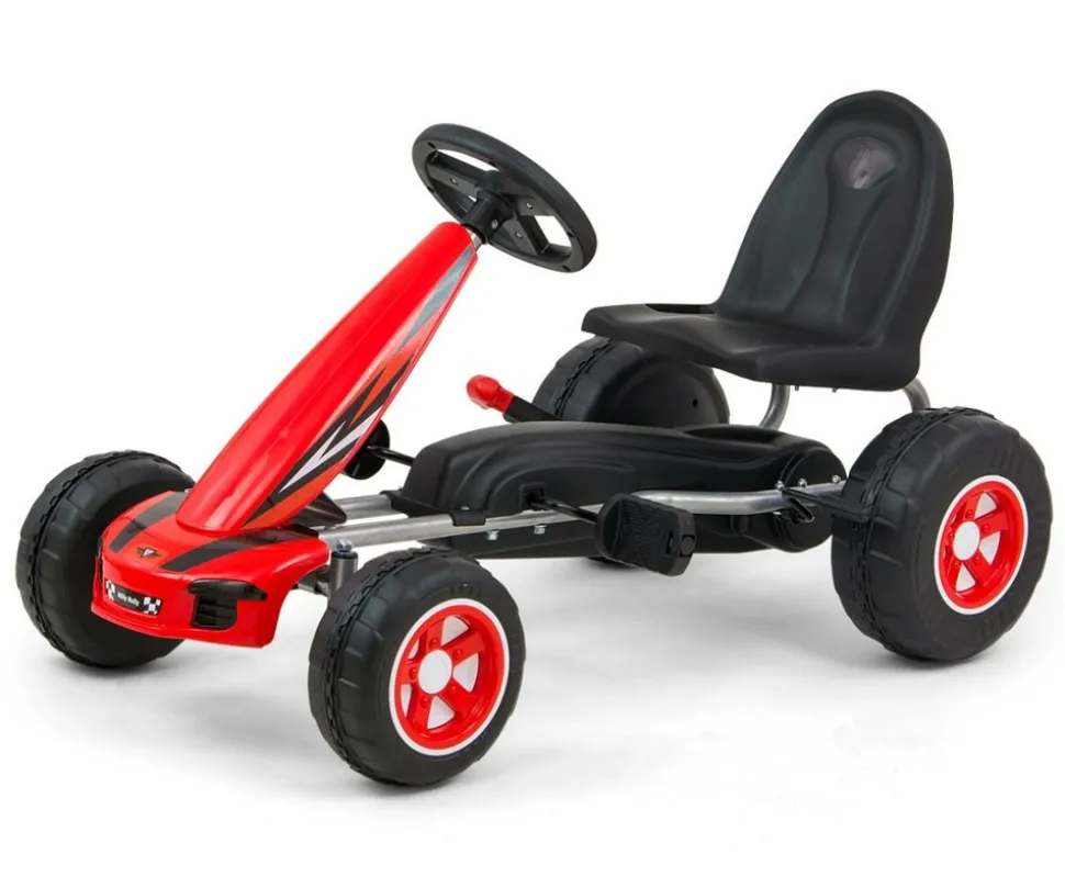 Nous vous présentons un autre modèle de kart appelé VIPER qui ravira tous les petits fans de voitures. Viper est équipé de grandes roues en plastique avec un élastique au milieu du pneu et des jantes colorées, ce qui permet à l’enfant de rouler confortablement même sur un terrain accidenté. Le cadre en acier de notre kart à pédales a été en outre renforcé avec des supports. Le frein à main utilisé assure un freinage sûr. Le kart VIPER dispose d’un siège conducteur sport avec 2 niveaux de réglage de la distance du volant, où chaque voyageur se sentira à l’aise. C’est grâce au réglage du siège du volant que le kart va « »grandir » » avec l’enfant. Viper est recommandé pour les enfants de plus de 3 ans. A la place de la plaque d’immatriculation, comme dans un véhicule adulte, on retrouve le logo Milly Mally avec deux échiquiers sur les côtés, ce qui signifie que notre kart de sport emmènera l’enfant dans le monde de la « »Formule 1″ » et se sentira comme un vrai pilote de rallye. Dimensions 87x48x48