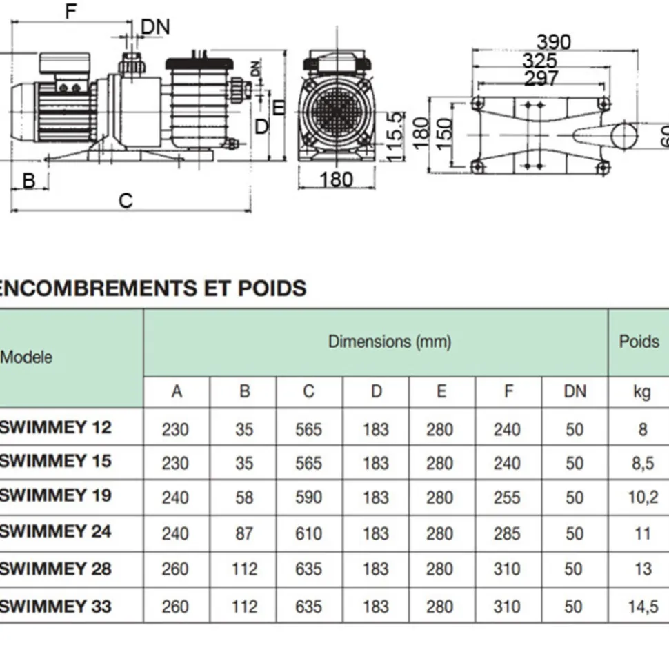 Le pompes de la série SWIMMEY sont conçues pour obtenir la plus grande fiabilité de fonctionnement dans la filtration et le recyclage de l’eau traité avec du chlore.