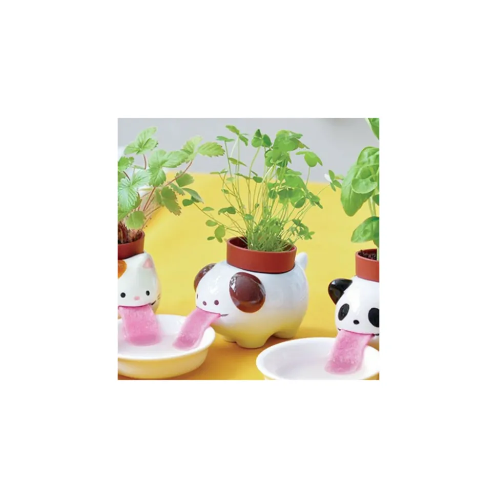 Kit tout prêt pour faire pousser votre Trèfle à 4 feuilles dans votre Peropon. Le mignon Peropon lape l’eau de la soucoupe et le Trèfle pousse sur son dos comme par magie. Sa petite langue rose en feutre aspire l’eau jusqu’au terreau du pot. Fabriqué en céramique vernie, Peropon comprend tout ce dont vous avez besoin pour faire pousser votre plante. Dim : 7 cm X 7.6 cm X 10.5 cm