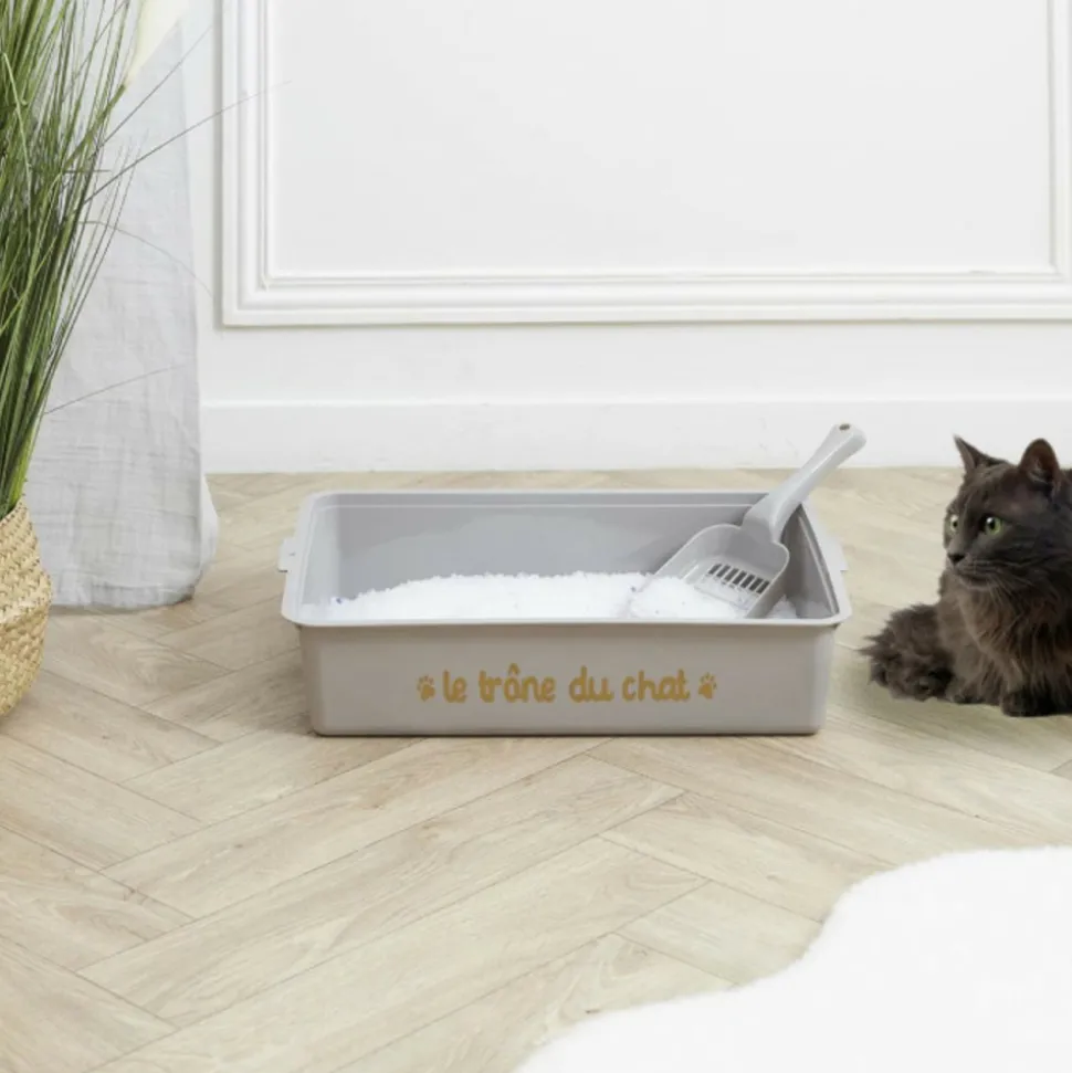 Dimensions : L. 42 x l. 31,5 x H. 9 cmMatière : 100% PlastiqueSpécificités :Pratique & UtileBac à litière pour chatAvec une pelleInscription « Le trône du chat »Forme rectangulairePoids : 0,29 kgCouleur : Gris