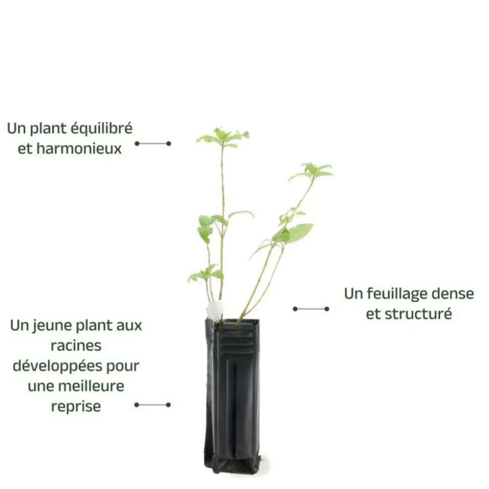 L’Épine Noire, également appelée Prunellier ou Prunus Spinosa, est un arbuste indigène très répandu dans les haies bocagères. Apprécié pour sa floraison blanche abondante et précoce dès la fin de l’hiver, il offre aussi des prunelles noires et acidulées à l’automne. Cet arbuste à feuillage caduc forme un buisson dense et épineux qui sert de refuge à de nombreux oiseaux et insectes.