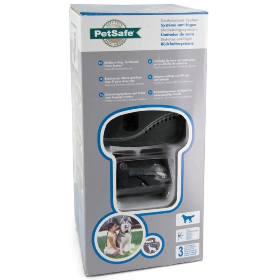 La clôture dans le sol de petsafe est une clôture invisible en fil qui empêche le chien de quitter le jardin. Pour aider à diriger votre chien obstiné, ce système de clôture dans le sol et le col récepteur sont équipés de cinq niveaux réglables de stimulation électrique, y compris un mode de ton seulement plus de vibrations réglables. Le collier récepteur réglable est spécialement conçu pour les chiens de toutes tailles, difficiles à dresser. Grâce à un fil d’antenne qui donne un signal au collier récepteur du chien ou du chat, une zone de sécurité est créée dans laquelle votre animal de compagnie peut se déplacer librement. Lorsque votre animal de compagnie vient trop près de la frontière qu’il ne peut pas franchir, il entend un signal d’avertissement. S’il choisit toujours de continuer, il recevra un signal assez ennuyant pour l’empêcher de franchir la limite. La livraison comprend un câble de 150 mètres, 1 récepteur, 1 émetteur, 50 fanions et 1 manuel d’utilisation. Après un dressage court de 1 à 2 semaines, votre animal de compagnie apprendre à ne pas dépasser la limite à nouveau. Cette clôture convient aux chiens de plus de 3,6 kg. En raison de la taille et du poids du récepteur, nous conseillons de l’utiliser uniquement sur les grands chiens.