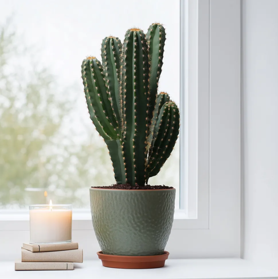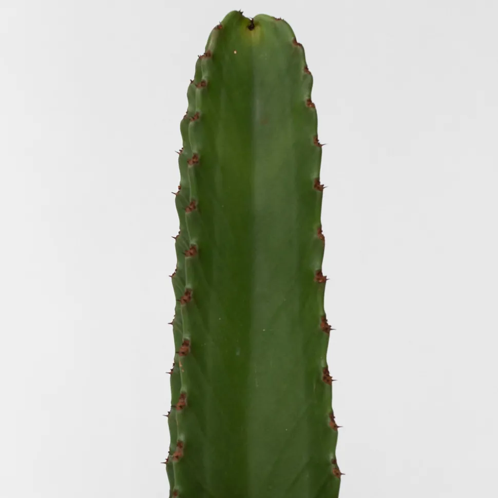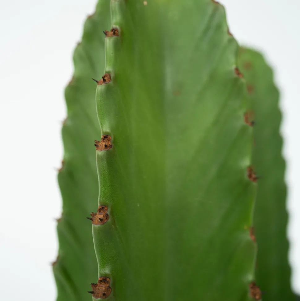 L’Euphorbia Ingens, également connue sous le nom de ‘Cowboy cactus’, est une plante populaire qui est souvent la vedette des blogs de décoration d’intérieur et des médias sociaux. Cette plante s’intègre parfaitement dans les intérieurs modernes, créant une atmosphère désertique dans n’importe quelle pièce. La plante est appelée Cowboy cactus parce qu’on la voit souvent dans les films sur le Far West. Officiellement, l’euphorbe n’est pas un cactus, mais une succulente. Attention, elle possède des épines. Sinon, elle est très facile à entretenir et peut être placée dans de nombreux endroits.