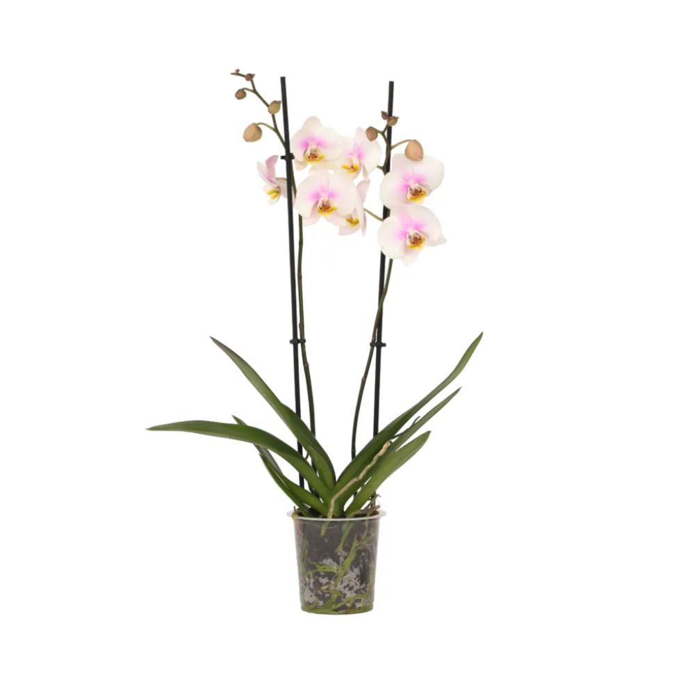 Le Phalaenopsis, également appelé orchidée papillon, est originaire des forêts tropicales humides d’Asie du Sud-Est, des Philippines et d’Australie, où il pousse principalement dans les arbres. L’orchidée papillon est incroyablement populaire et il n’est pas difficile de comprendre pourquoi. Non seulement cette orchidée produit des fleurs élégantes aux couleurs magnifiques, mais elle est également facile à entretenir et a une longue période de floraison qui peut durer jusqu’à trois mois. En outre, le Phalaenopsis est l’une des rares espèces qui donne plusieurs branches de fleurs par an. Le Phalaenopsis rose produit de magnifiques fleurs roses sur 2 branches florales.