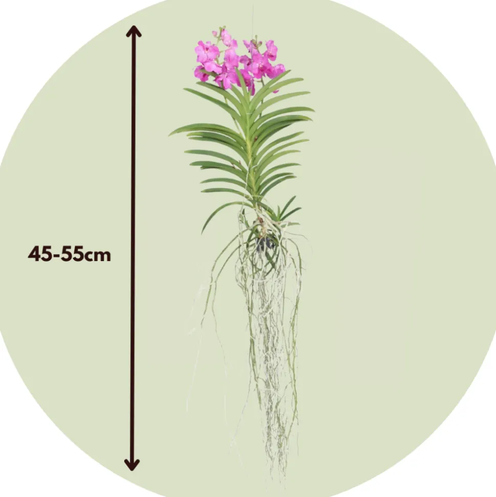 Vous recherchez une plante spéciale ? Cette Vanda fait forte impression et donne un look tropical à votre pièce. Il est de couleur rose et est livré. Une orchidée Vanda a besoin de beaucoup de lumière pour fleurir. Évitez la lumière directe du soleil en été.