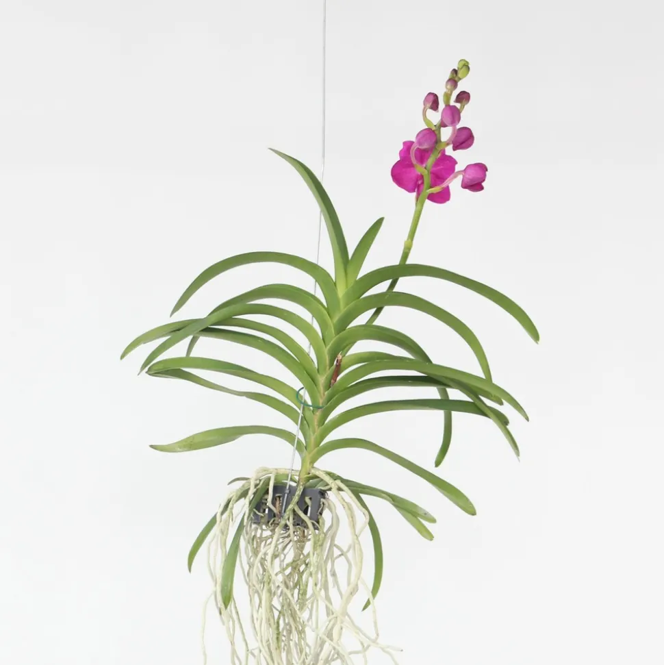 Vous recherchez une plante spéciale ? Cette Vanda fait forte impression et donne un look tropical à votre pièce. Il est de couleur rose. Une orchidée Vanda a besoin de beaucoup de lumière pour fleurir. Évitez la lumière directe du soleil en été.