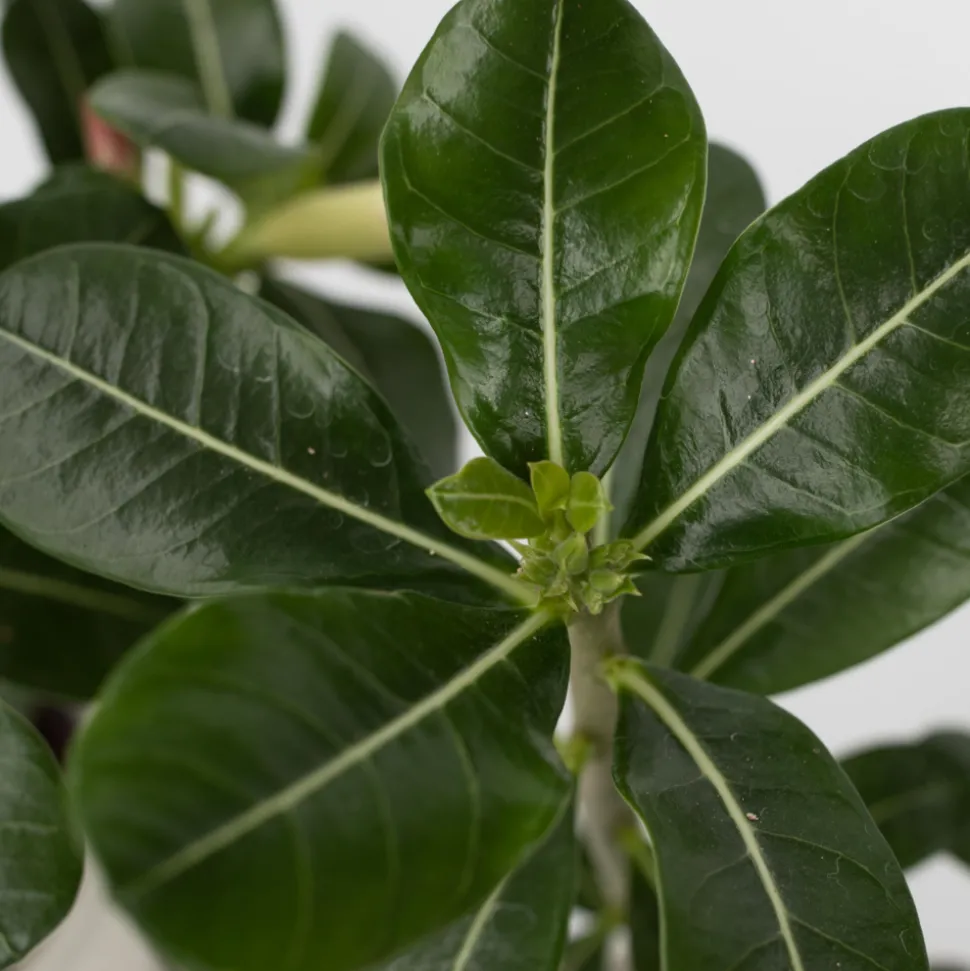 L’Adenium obesum, plus connu sous le nom de rose du désert, est une plante exotique particulièrement belle. Comme son nom l’indique, elle est originaire des parties sèches du désert de l’Afrique de l’Est et du Nord-Est. Localement, l’Adenium obesum peut atteindre jusqu’à 5 mètres de haut avec une belle tige nue pleine de caractère. Heureusement, il n’atteindra pas une telle hauteur chez nous. L’Adenium se distingue par ses belles fleurs roses, ses feuilles vertes et la forme fantaisiste de sa tige.