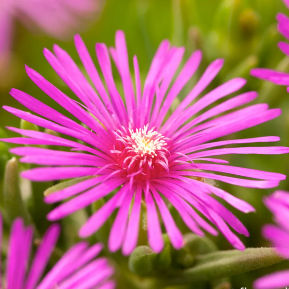 Le pourpier (Portulaca oleracea), plante herbacée, succulente aux tiges charnues, au feuillage plat, vert brillant, au port étalé ou retombant, les fleurs en forme de coupe sont de couleurs vives, rose vif, orangé, jaune, rouge, mais aussi blanc, elles s’épanouissent au soleil ou en pleine lumière, lorsque le ciel est couvert, elles restent fermées.