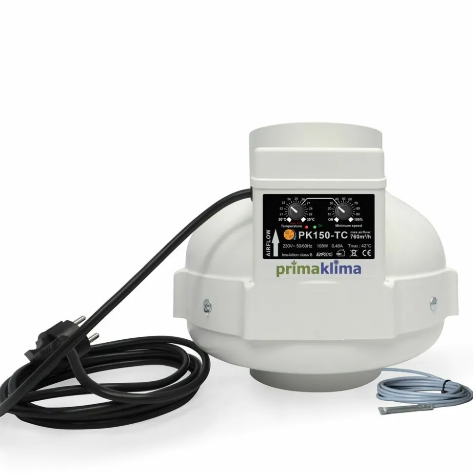 Ce ventilateur Prima Klima permettra un contrôle climatique précis dans tous les espaces intérieur. Sur le devant de celui-ci se trouve un switch de température réglable de 20 à 30°C et un variateur de vitesse réglable de 10 à 100%. Ces 2 commutateurs serviront à la programmation d’une consigne qui déclenchera la mise en marche de l’extracteur seulement quand nécessaire.
