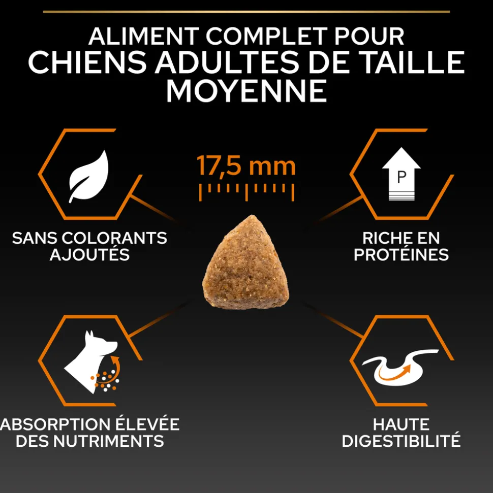 Ces croquettes sont spécialement conçues pour les chiens de races moyennes pesant entre 10 et 25 kg