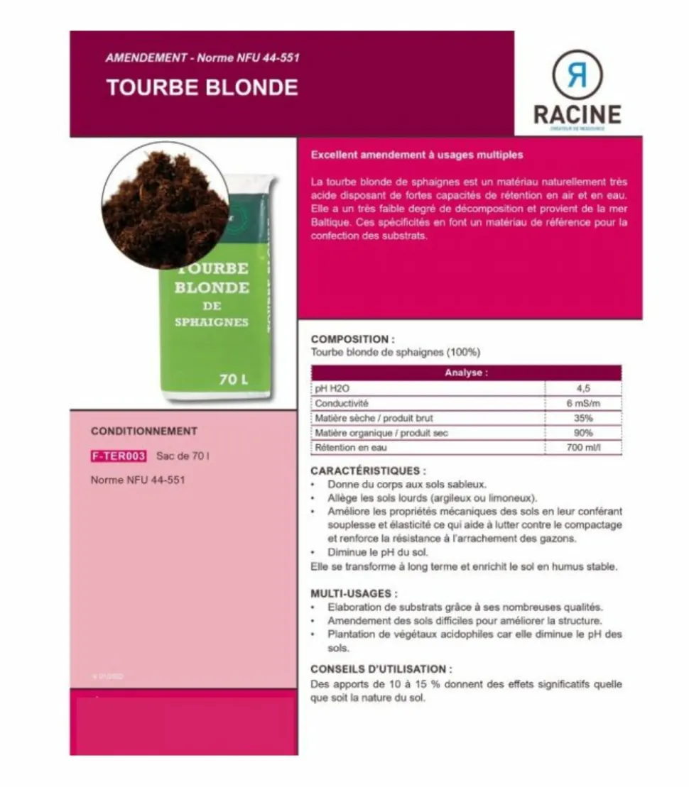 La tourbe blonde utilisée comme amendement au substrat favorisera l’enracinement des végétaux comme le gazon.