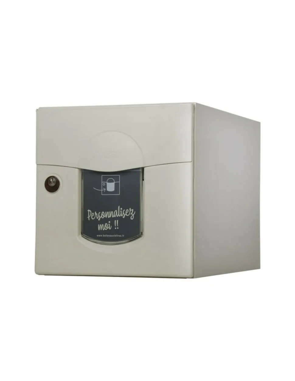 Boitier avec gouttière hydrofuge, porte recouvrante avec volet et grand porte-nom personnalisable.