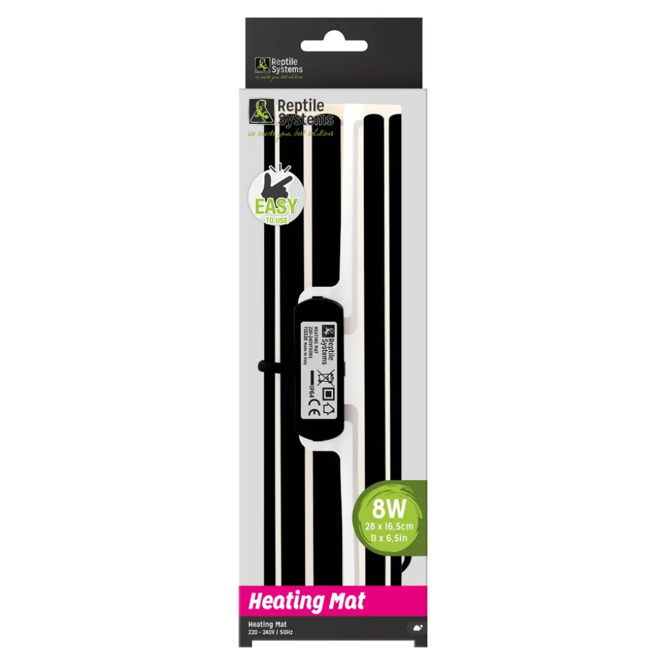 Le tapis chauffant Reptile systems est fabriqué à partir d’une feuille de polymère qui est ensuite sérigraphiée avec une encre exclusive conductrice d’électricité. Ce tapis chauffant présente ainsi un profil ultra plat. Techniquement, la distribution du composé chauffant permet une diminution progressive de la température vers le bord des bandes chauffantes ce qui réduit le risque de fissuration du verre de votre terrarium par choc thermique. Une réponse thermique élevée associée à une uniformité de la chaleur sur le reste de la surface est garantie. Les propriétés de la thermistance sont également intégrées dans chaque tapis comme un élément de sécurité supplémentaire. En faisant le choix éclairé d’un équipement à la pointe de la technologie, vous apporterez à vos petits protégés des conditions idéales pour vivre dans un environnement conforme aux besoins de leurs espèces. Tapis chauffant Heating mat pour reptiles 8w – 28×16.5cm.