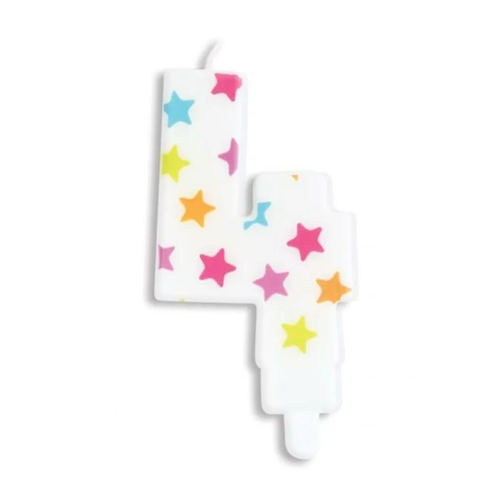 Ces bougies d’anniversaire numérotées vous permettent de fêter l’anniversaire de vos proches. Avec une taille de 7 cm environ, ces bougies sont faites pour être plantées dans le gâteau d’anniversaire. Elles donneront de la couleur et de la joie à ce moment si particulier. Bougie numéro 4, blanche à motifs colorés. Faites la fête avec tous les produits créatifs de ScrapCooking Party !