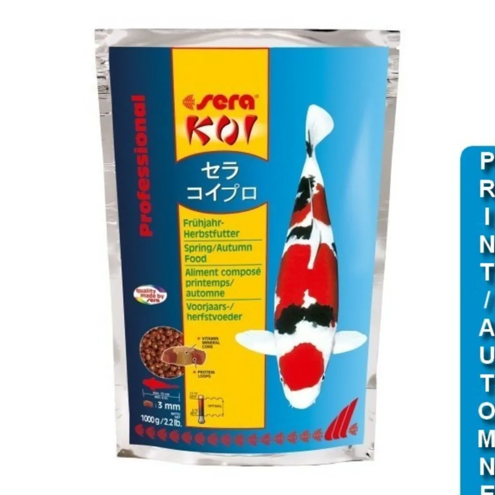 Nourriture pour carpe koi sera pond professional pour bassin de jardinnourriture poissons de bassinl’aliment digeste pour des températures inférieures à 17°cen dessous de 17°c, le métabolisme des poissons n’est plus pleinement opérationnel. C’est pourquoi la nourriture doit être particulièrement digeste. Pour les koïs, ceci est la seule manière de se préparer à l’hiver et, au printemps, de bien démarrer la saison.sera koi professional aliment composé printemps/automne tient compte des exigences alimentaires particulières des carpes koïs et autres poissons de bassin lorsque les températures sont inférieures à 17°c.le procédé de coextrusion unique de sera permet de combiner des matières premières traitées de manières différentes. L’anneau contient des matières premières particulièrement digestes qui soulagent le métabolisme. Le cœur se compose, entre autres, de vitamines, de minéraux et d’oligo-éléments essentiels pour une croissance saine et un système immunitaire fort. Un complément de vitamine c renforce les défenses naturelles et réduit la sensibilité aux maladies.Aliment complet pour tous les koïsmode d’emploinourrissez les poissons lorsque la température se situe entre 8 et 17°c. Ne donner que de petites quantités que les poissons peuvent absorber en peu de temps.Ingrédientsfarine de poisson, amidon de maïs, gluten de blé, farine de blé, ca-caséinate, levure de bière, germes de blé, huile de poisson, mannane-oligosaccharides (0,4 %), algues spiruline, krill, perna canaliculus, ortie, herbes, luzerne, persil, algues marines, paprika, épinard, algues haematococcus, ail, carottes.Constituants analytiquesprotéines brutes 41,3 %, matières grasses brutes 8,0 %, fibres brutes 4,8 %, humidité 4,8 %, cendres brutes 6,5 %.Additifsvitamines et provitamines : vit. A 37.000 ui/kg, vit. D3 1.800 ui/kg, vit. E (d-l-acétate de tocophérol) 120 mg/kg, vit. B1 35 mg/kg, vit. B2 90 mg/kg, vit. C stab. (l-ascorbyle monophosphate) 1.000 mg/kg.colorants: additifs ce.