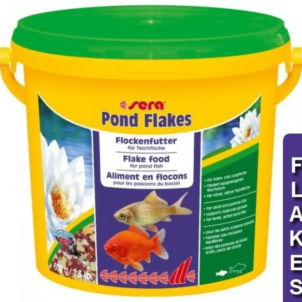 L’aliment en flocons pour les petits poissons de bassinnourriture poissons rouges de bassinsera pond flakes est l’aliment composé à base de flocons fabriqués selon un procédé spécial, pour tous les petits poissons de bassin, tels que les poissons rouges et les bouvières, ainsi que pour les jeunes poissons. La formule adaptée, avec une haute teneur de vitamines et minéraux, ainsi qu’un rapport glucides/protéines équilibré, répond aux besoins de ces animaux. Cet aliment digeste favorise la croissance saine, l’activité et les défenses naturelles des poissons, étant approprié pour l’alimentation tout au long de l’année. Tant donné que les flocons flottent longtemps, conservant leur forme, ils sont entièrement consommés et ne polluent pas l’eau.Aliment complet pour poissons de bassinlorsque la température de l’eau est supérieure à 8°c, nourrir les poissons plusieurs fois par jour en ne leur donnant que les quantités qu’ils peuvent absorber en peu de temps.Aliment naturel pour poissons de bassince produit appartient à la gamme « sera nature », qui ne nécessite ni colorants ni conservateurs. Une alimentation variée avec des ingrédients naturels constitue la meilleure protection contre les carences et favorise la santé et la vitalité des poissons en toutes saisons. C’est pour cette raison que les aliments nature contiennent des ingrédients naturels comme par exemple l’algue spiruline, le krill ou la farine d’insectes durables provenant de la larve de la mouche soldat (hermetia). Les symboles sur le devant de l’emballage informe sur ces composants et leur proportion dans les aliments.Aliment complet pour tous les poissons de bassinmode d’emploipendant toute l’année, nourrir 1 à 2 fois par jour par petites quantités, en ne donnant aux animaux que la quantité qu’ils peuvent absorber en peu de temps.Ingrédientsfarine de blé, farine de poisson, ca-caséinate, algues spiruline (1,5 %), mannane-oligosaccharides, levure de bière, perna canaliculus, ail, algues haematococcus.Constituants analytiquesprotéines brutes 21,9 %, matières grasses brutes 2,7 %, fibres brutes 1,9 %, humidité 5,0 %, cendres brutes 3,3 %.Additifsvitamines et provitamines : vit. A 8.000 ui/kg, vit. D3 1.000 ui/kg, vit. E (d-l-acétate de tocophérol) 100 mg/kg, vit. B1 10 mg/kg, vit. B2 10 mg/kg, vit. C stab. (l-ascorbyle monophosphate) 100 mg/kg.Découvrez également la nourriture pour bassin sera pond mix royal