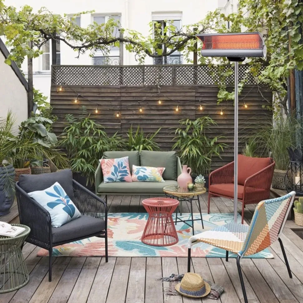 Conception unique et brevetée Le chauffage au sol se distingue par sa conception européenne brevetée, élégante et fonctionnelle, qui s’intègre harmonieusement à tout décor extérieur. Parfait pour les terrasses, les jardins ou les vérandas, il ajoute une touche moderne à votre espace.