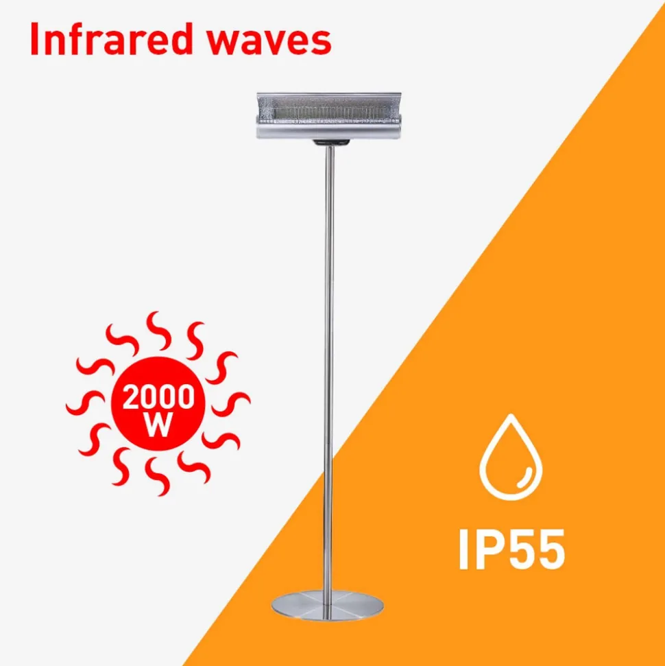 Chaleur immédiate et orientable Grâce au chauffage au sol réfléchissant incurvé, vous pouvez diriger la chaleur exactement là où vous en avez besoin, tout en protégeant vos yeux de la lumière directe. Avec sa puissance de 2000 W et sa technologie infrarouge à ondes courtes, ce radiateur chauffe rapidement une grande surface, offrant un confort instantané. Le support de chauffage offre une stabilité et permet de le positionner facilement là où la chaleur est nécessaire.