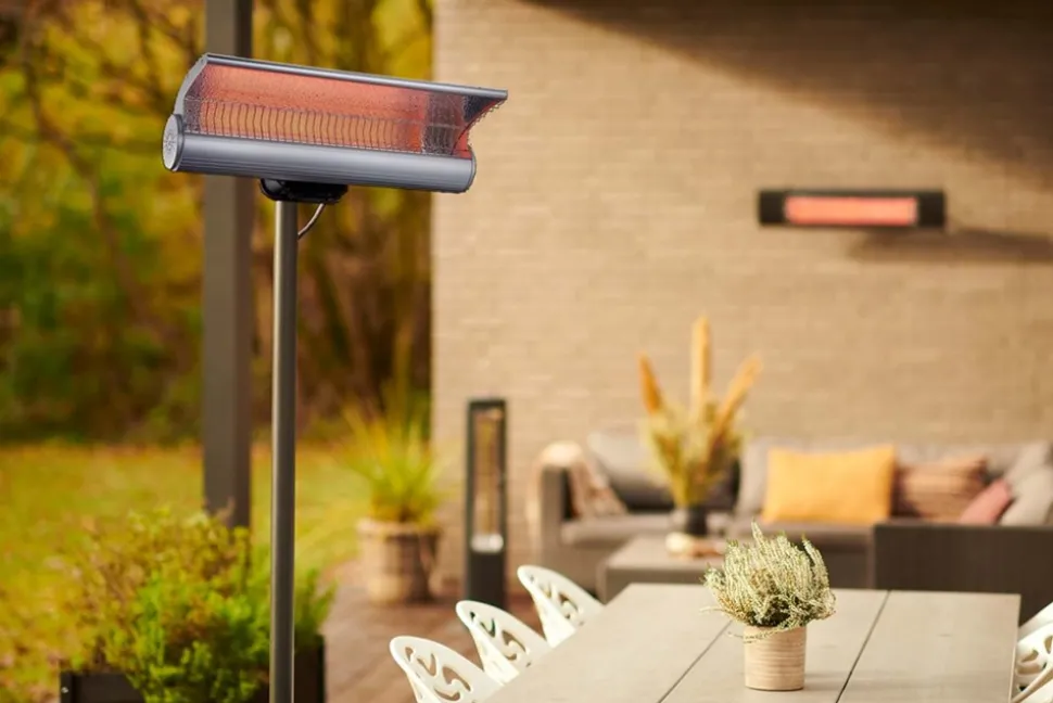 Résistant et sûr Conçu pour durer, le chauffage au sol est fabriqué en aluminium extrudé de haute qualité avec des composants en acier inoxydable, ce qui garantit sa robustesse et sa résistance aux intempéries. Grâce à sa protection IP65, l’appareil est protégé contre les jets d’eau, ce qui le rend parfait pour une utilisation en extérieur, même dans des conditions météorologiques défavorables.