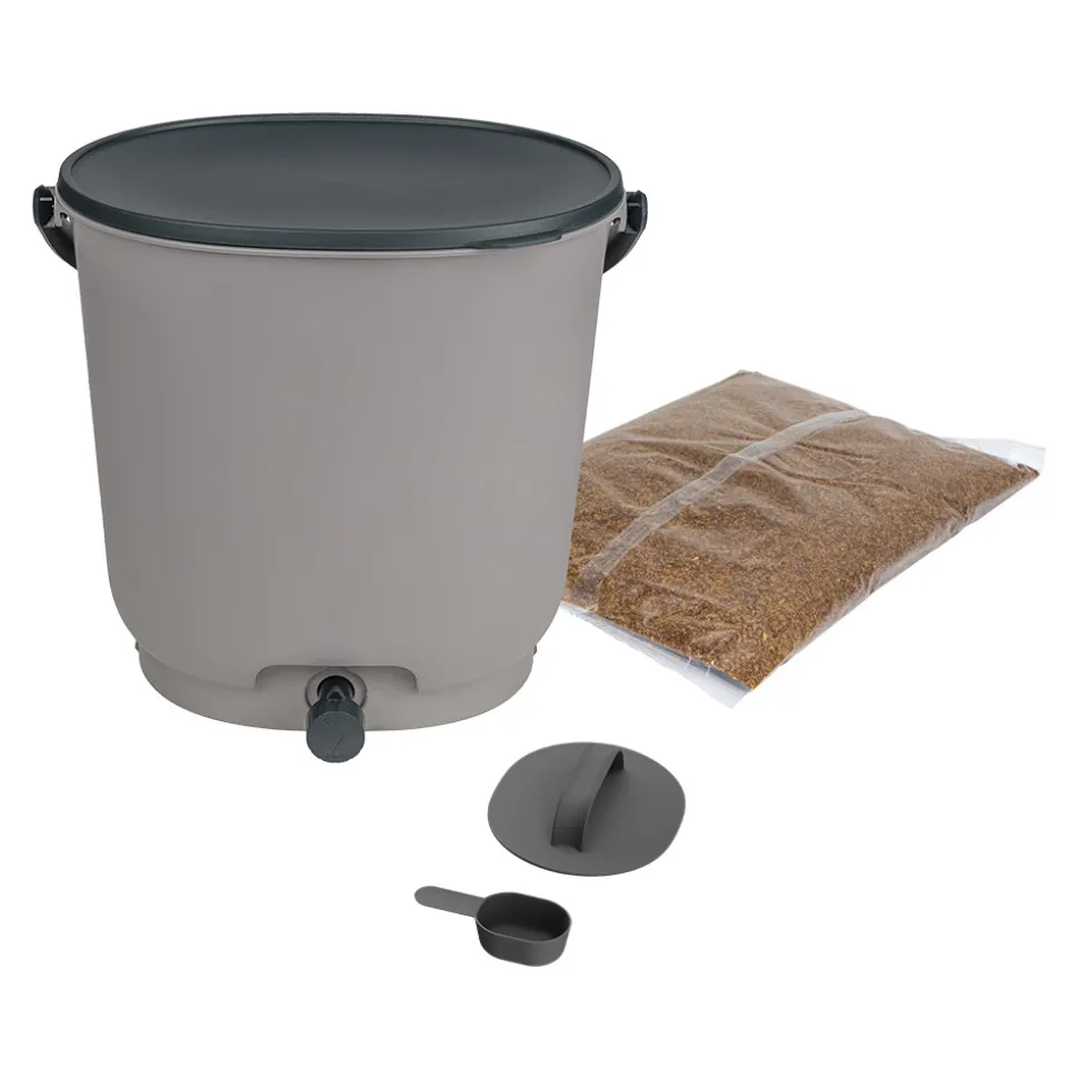 Bokashi Organko Essential est different des autres composteurs. Il est fabrique a partir de plastiques recycles post-consommation. En d’autres termes, il s’agit de plastique recycle issu de produits mis au rebut, qui sont collectes dans des conteneurs dedies aux emballages ou au plastique.Bokashi Organko Essential est donc le reflet de notre et de votre respect de la planete Terre pour un avenir meilleur et plus sain.Lors de la methode bokashi, l’utilisation de son bokashi contenant des micro-organismes efficaces empeche les aliments organiques de pourrir. Les dechets organiques fermentent a la place, ce qui permet de collecter les dechets organiques sans mouches ni odeurs. Enfin, le volume des dechets organiques dans la cuisine est reduit de 25 %.Ce composteur d’intérieur possède plusieurs atouts :· Il est doté d’un bouchon vous permettant de profiter des avantages du thé de compost sans avoir à manipuler les déchets.Le compacteur fait toute la largeur du seau, ce qui permet de compacter les déchets efficacement et sans se salir.L’ouverture et la fermeture de celui-ci est très simple.