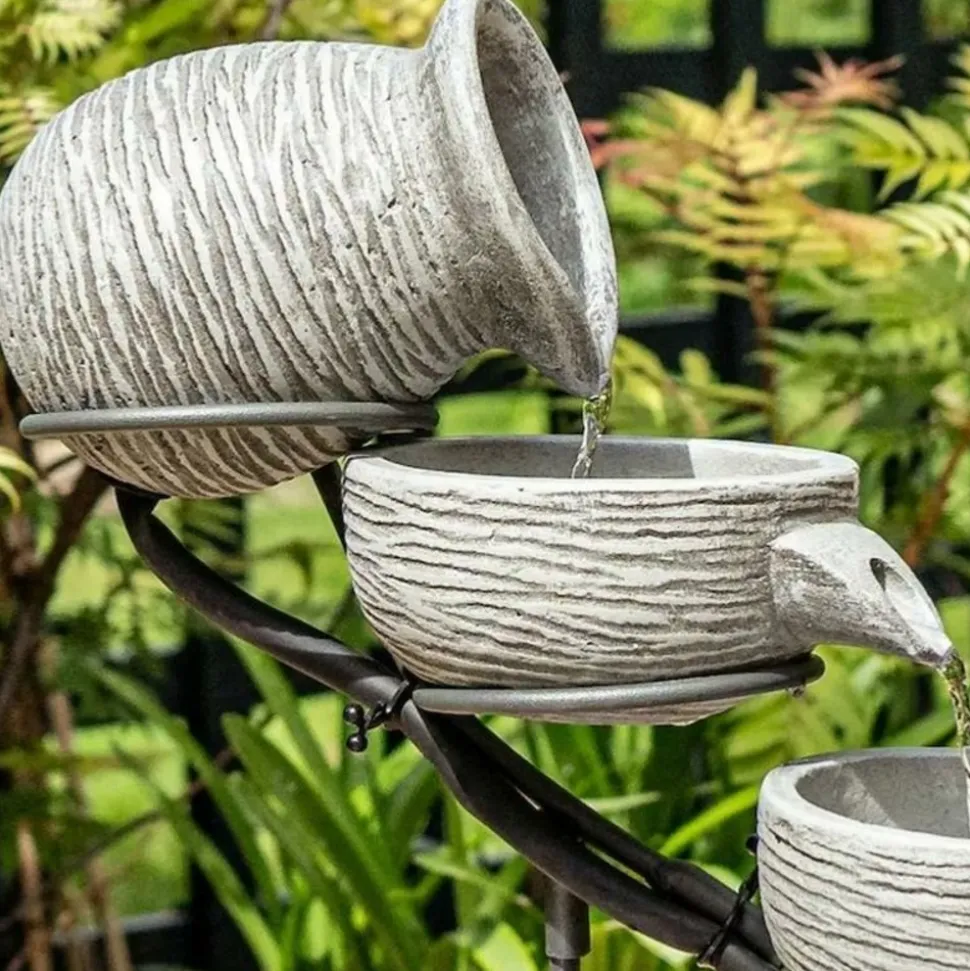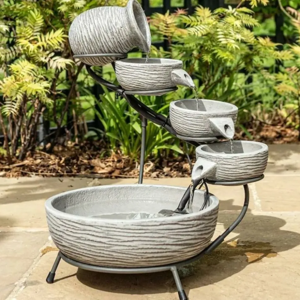 Très jolie fontaine solaire avec sa cascade, son amphore en partie supérieure ainsi que ses 4 vasques.
