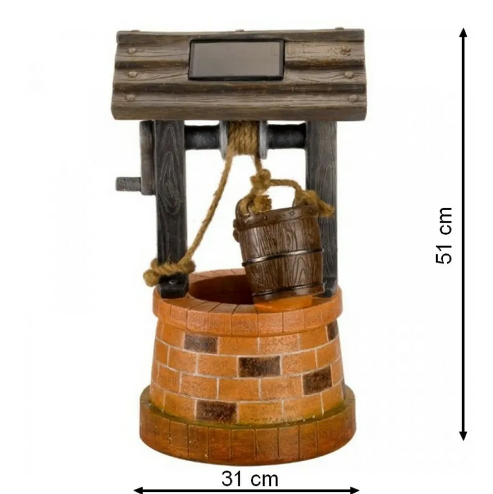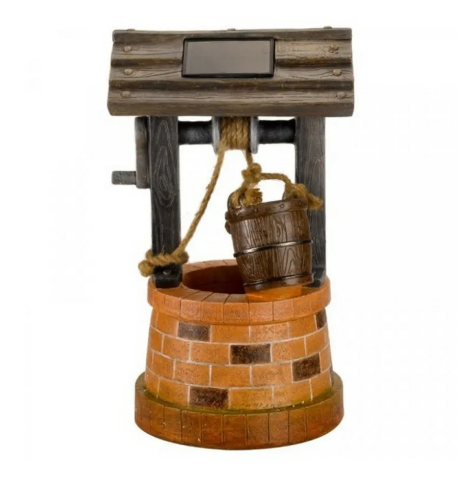 Cette fontaine solaire Puits fera un point d’attraction original et reposant pour votre extérieur. En polyrésine résistante et durable dans le temps, avec des détails et peintures soignés, la fontaine, sans fil, totalement autonome, trouvera sa place sur votre terrasse, balcon, patio, dans le jardin, en situation ensoleillée.