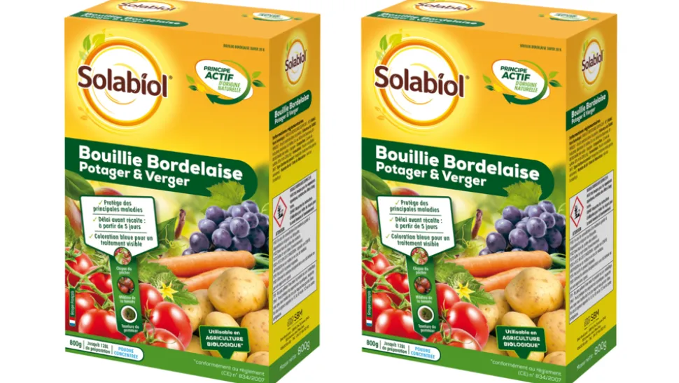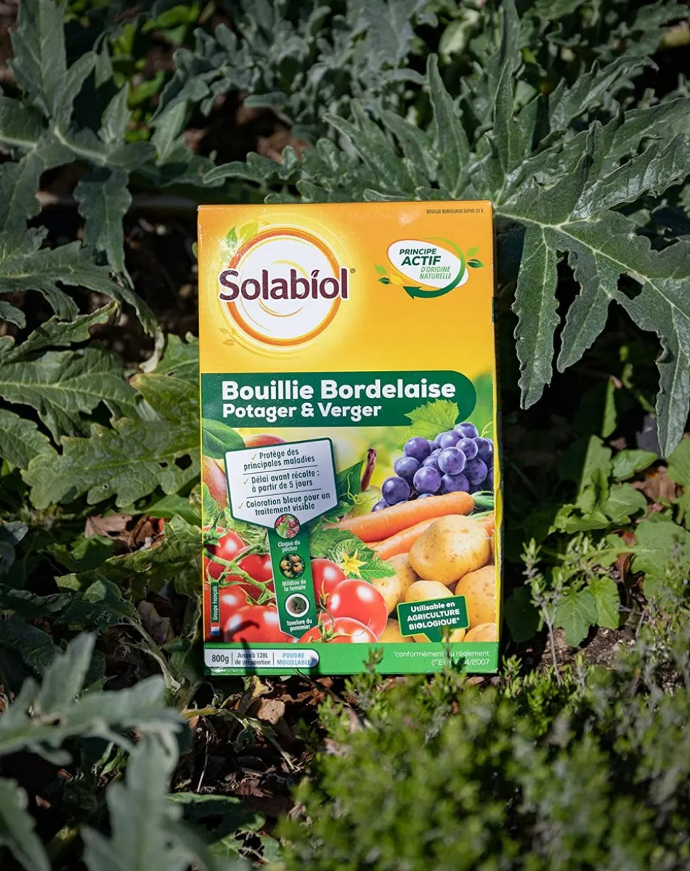 – La Bouillie Bordelaise Potager et Verger SOLABIOL est un produit préventif et curatif de contact à base de sulfate de cuivre dont les vertus sont reconnues depuis longtemps et utilisable en jardinage biologique.