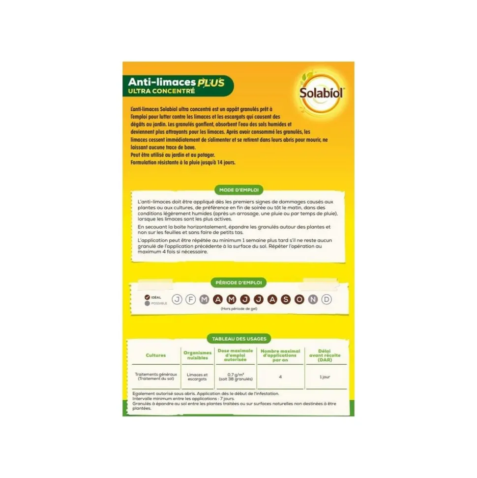 -L&rsquoanti-limaces Ultra concentré Solabiol est un appât granulé prêt à l&rsquoemploi nouvelle génération. Plus concentré il permet de couvrir une surface plus importante.