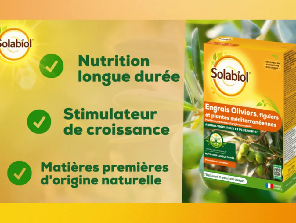 – Engrais idéal pour assurer la croissance et la vigueur des rameaux des oliviers et plantes méditerranéennes.