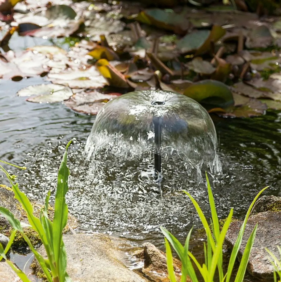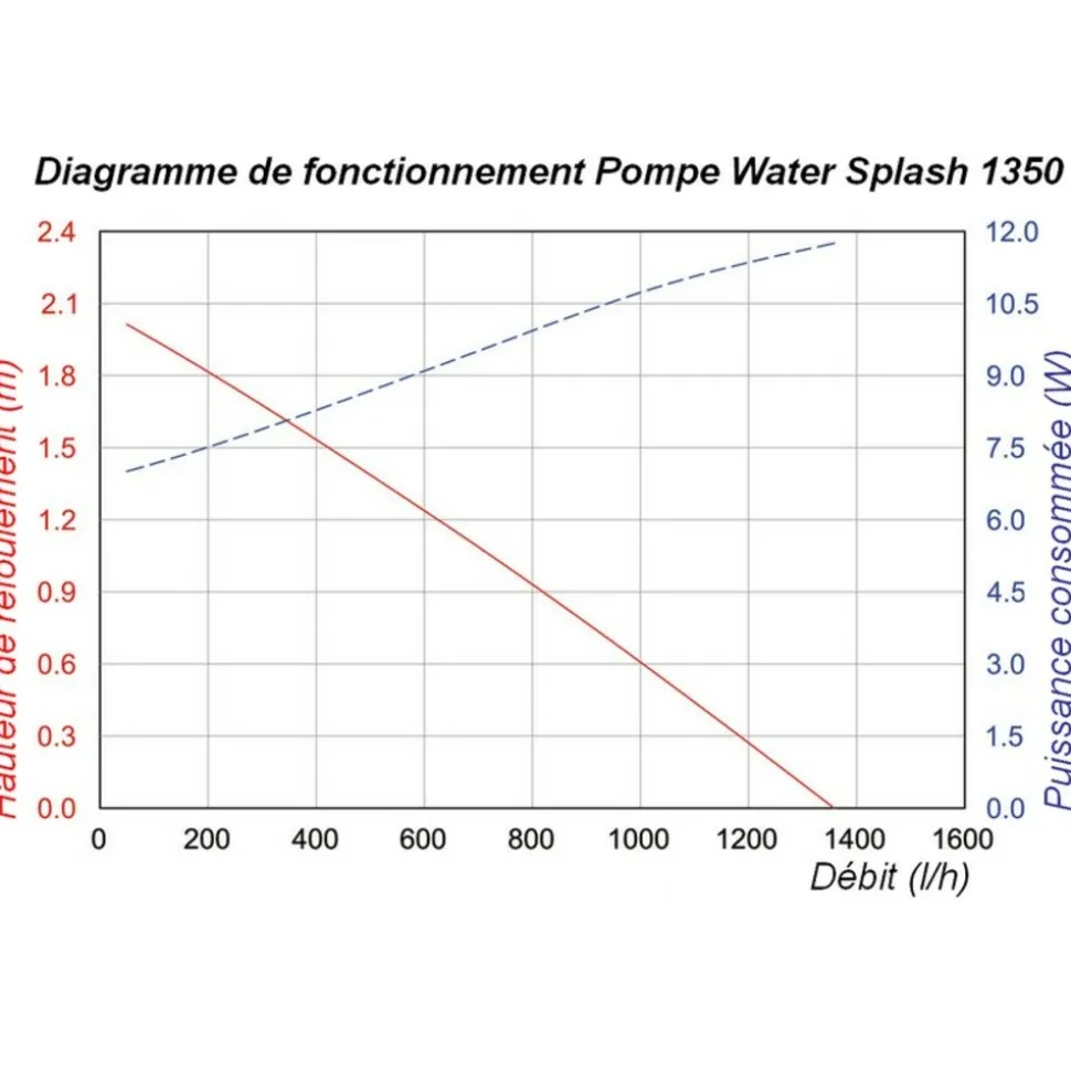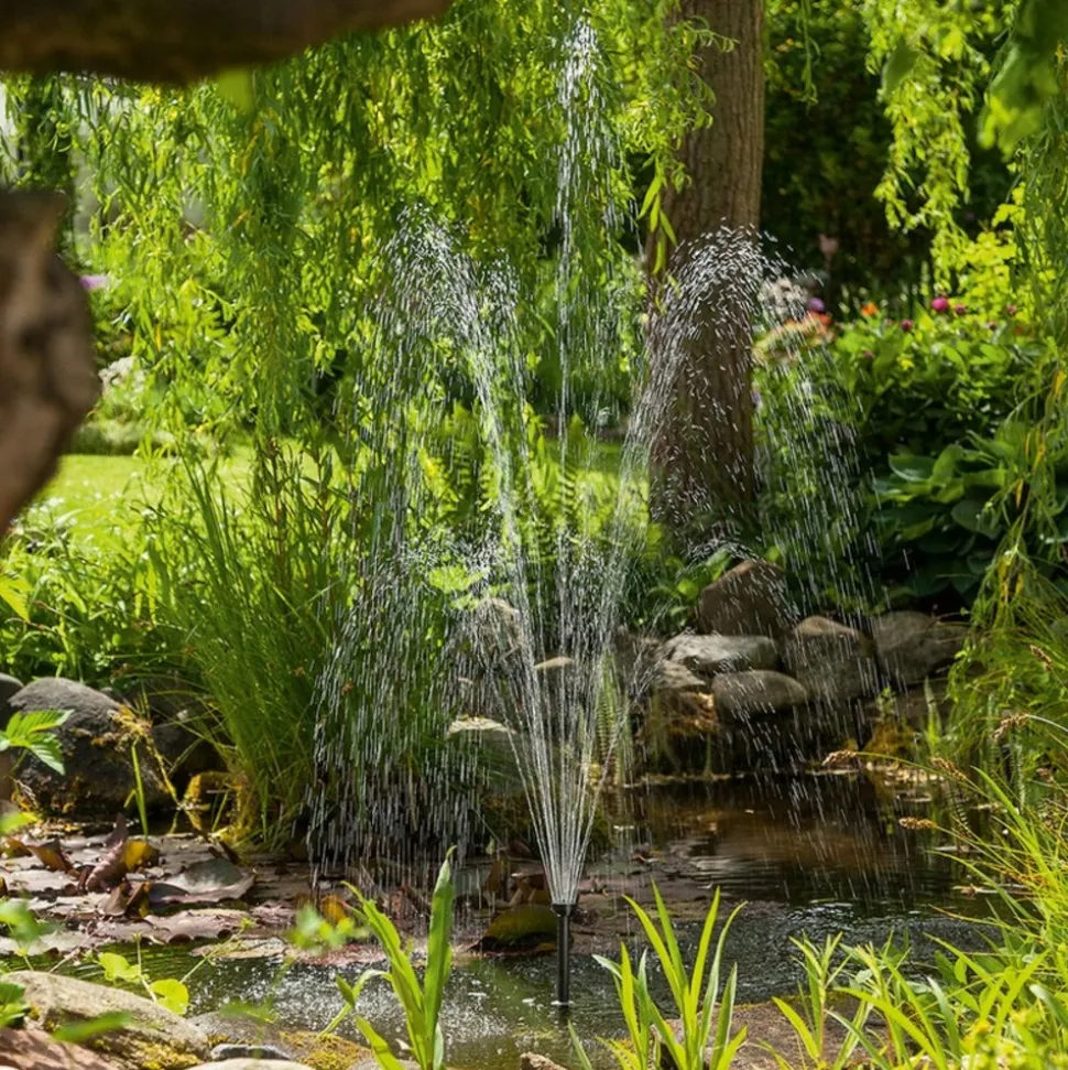 Possibilité de brancher un tuyau, de diamètre interne 13mm, en sortie de pompe (non fourni) pour réaliser une fontaine ou petite cascade par exemple. Le débit sera dépendant de la hauteur de refoulement. Voir diagramme pompe.